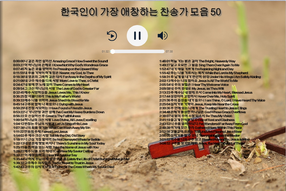0:00:00 나 같은 죄인 살리신 Amazing Grace! How Sweet the Sound!