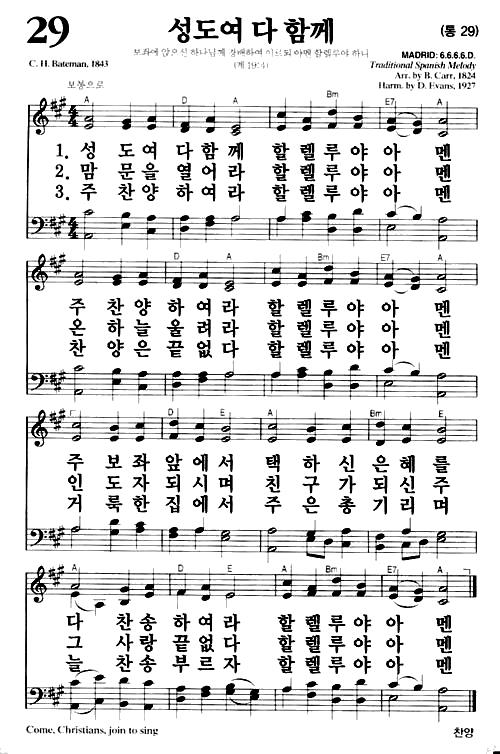 새찬송가 29장(통29장) 성도여 다 함께 Come, Christians, Join to Sing