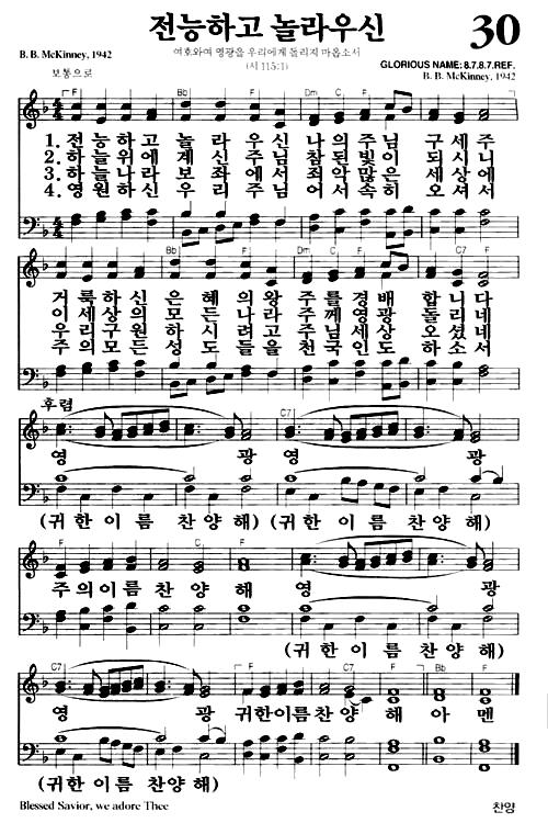 새찬송가 30장 전능하고 놀라우신 Blessed Savior, we adore Thee