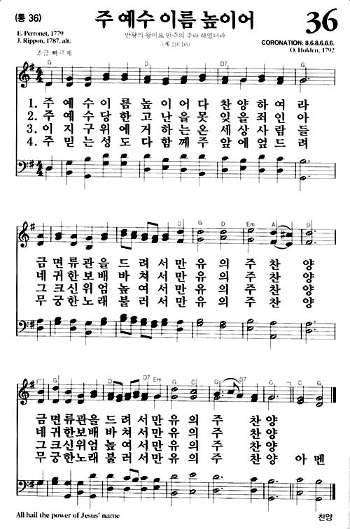 새찬송가 36장(통36장) 주 예수 이름 높이어 All Hail the Power of Jesus' Name