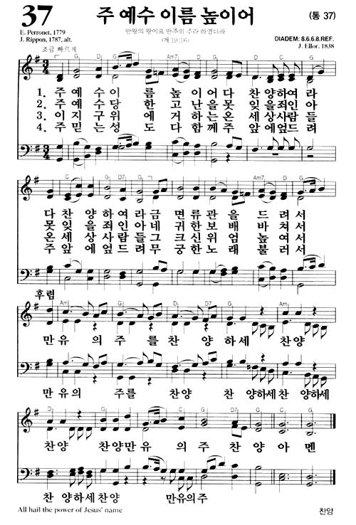 새찬송가 37장(통37장) 주 예수 이름 높이어 All Hail the Power of Jesus' Name