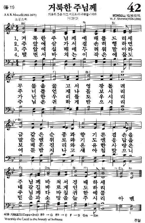 [찬송가 반주] 새찬송가 42장(통11장) 거룩한 주님께 Worship the Lord in the Beauty of Holi…