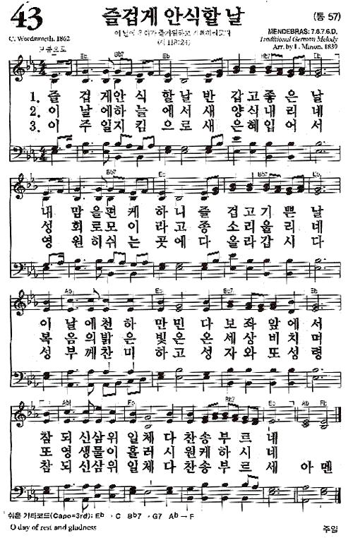 [찬송가 반주] 새찬송가 43장(통57장) 즐겁게 안식할 날 O Day of Rest and Gladness