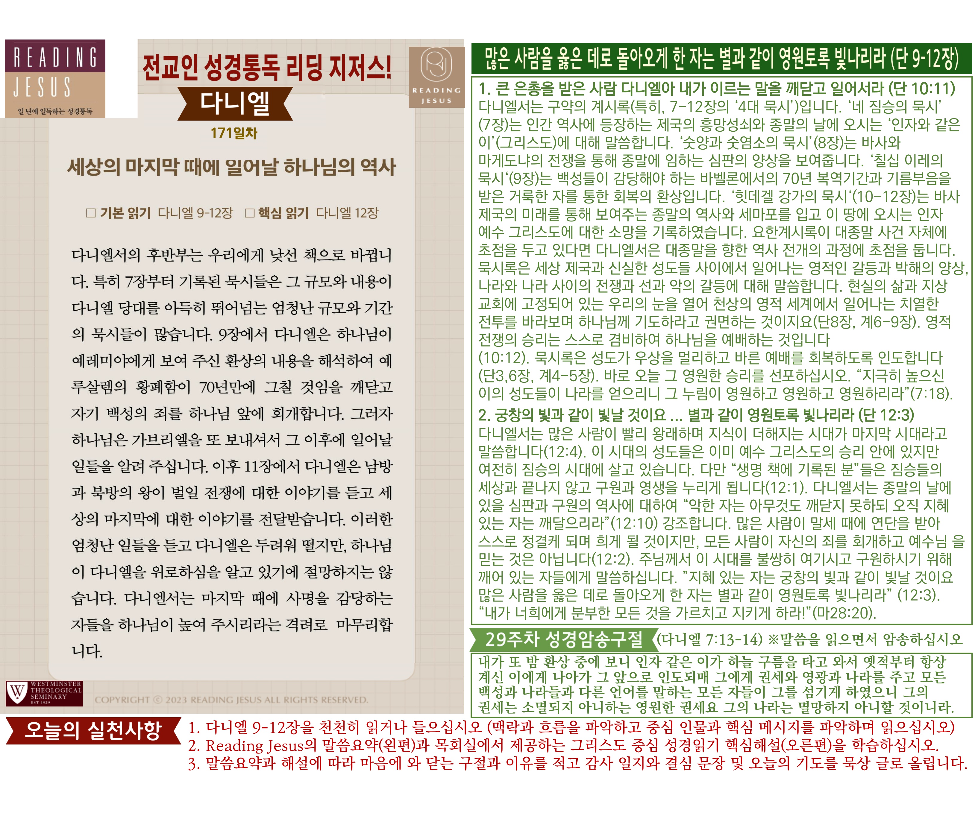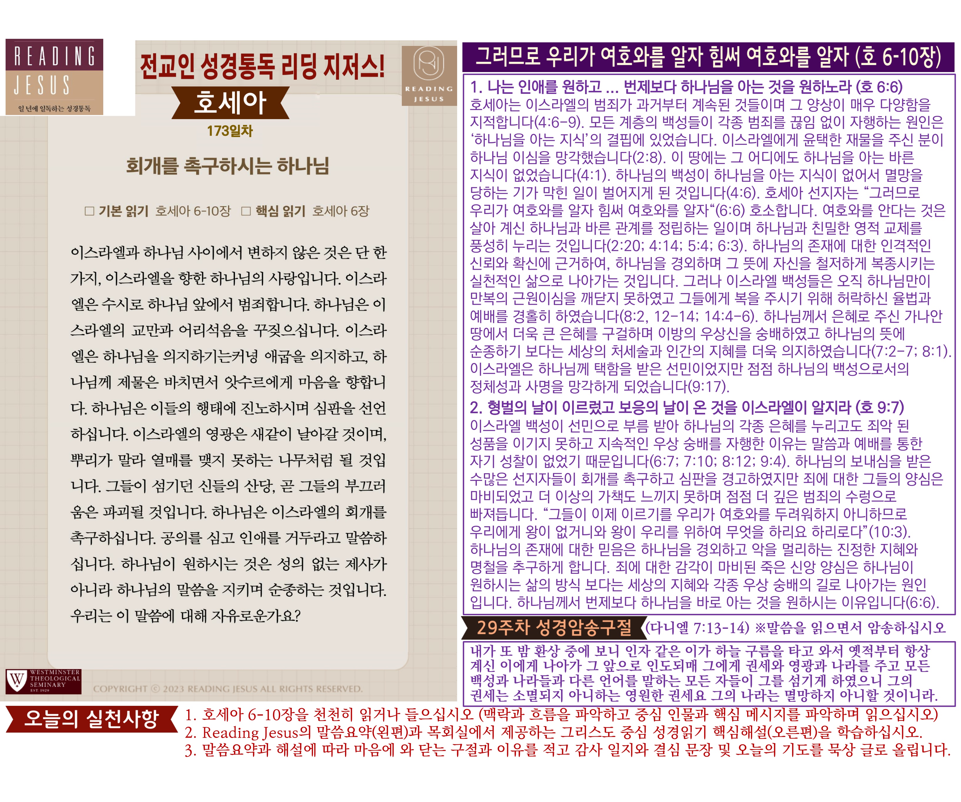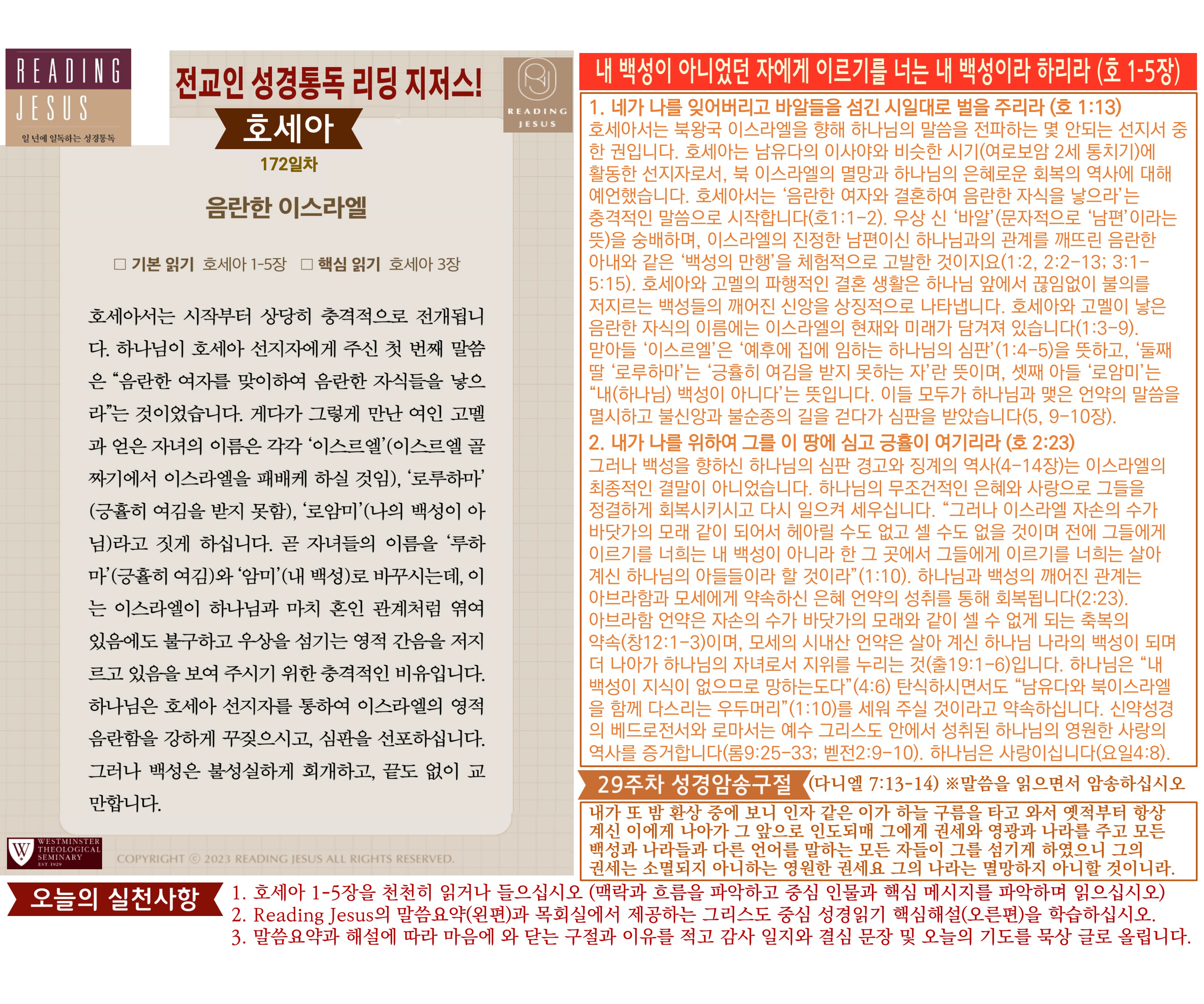 그리스도 중심 성경읽기, 리딩지저스 말씀 요약 | 29주차 : 다니엘, 호세아 관리자 교재와 해설 0 54 04.06 16:02 Author 1 1 Lv.78 관리자 최고관리자 370,180 (6.6%) 너희 안에 이 마음을 품으라 곧 그리스도 예수의 마음이니(빌립보서 2:5) Let this mind be in you, which was also in Christ Jesus(Philippians 2:5)
