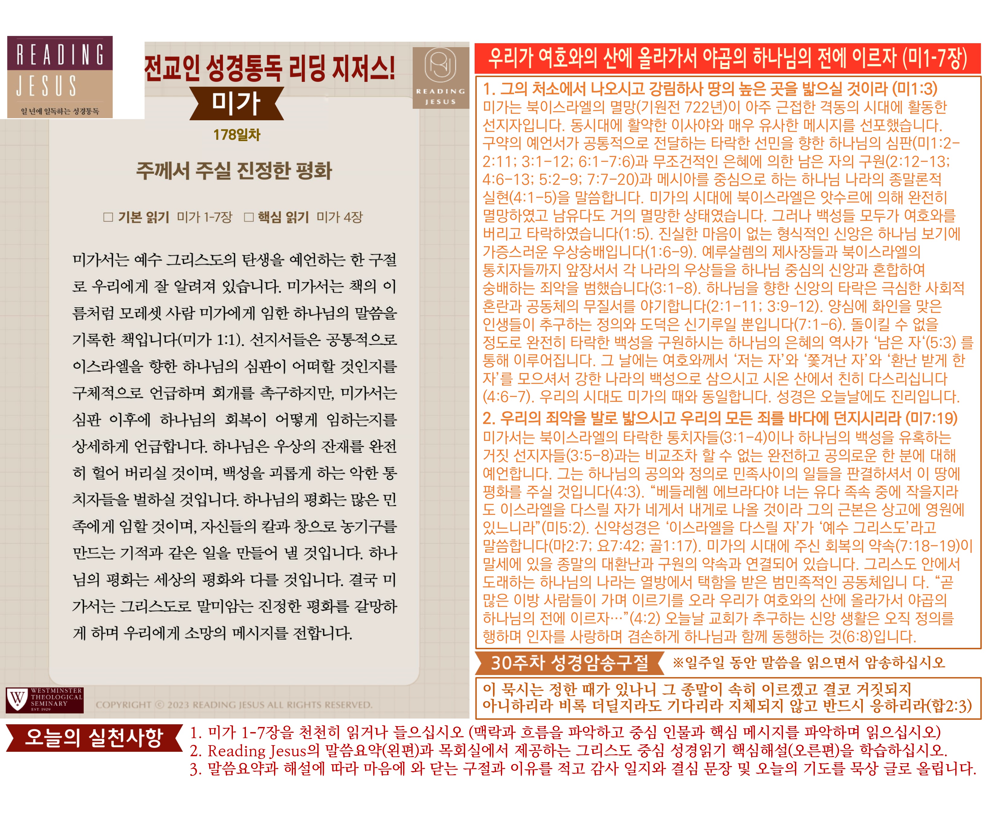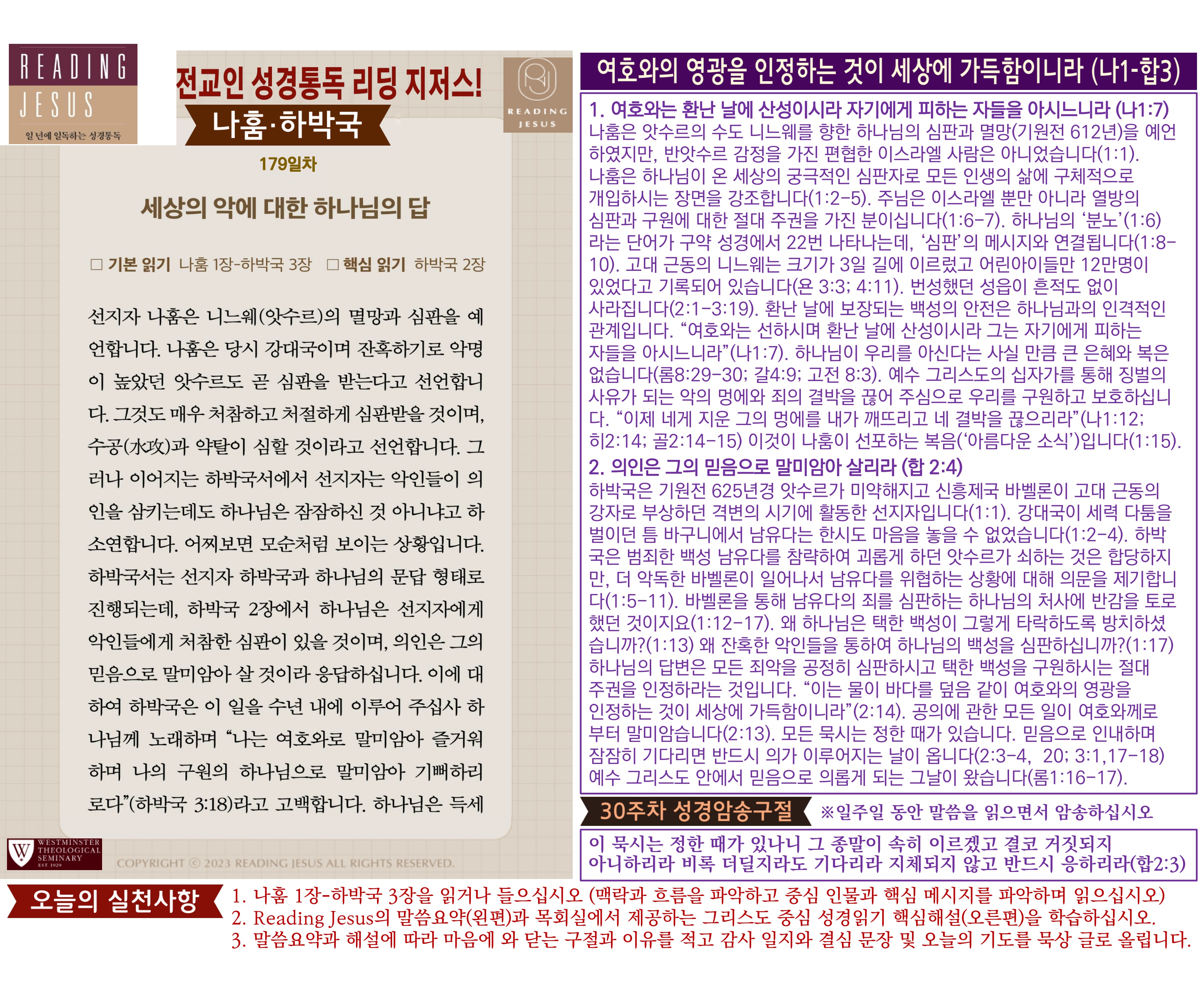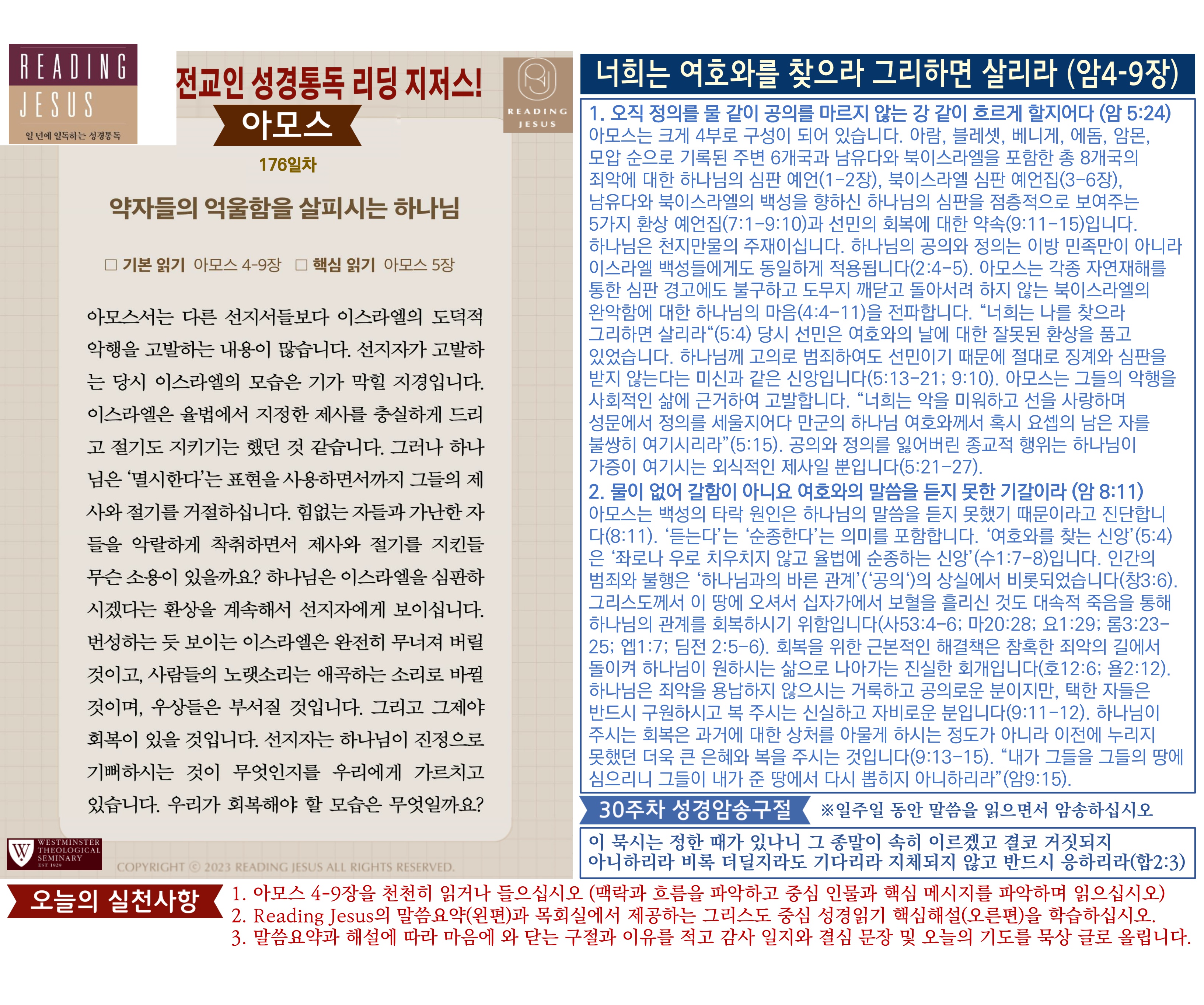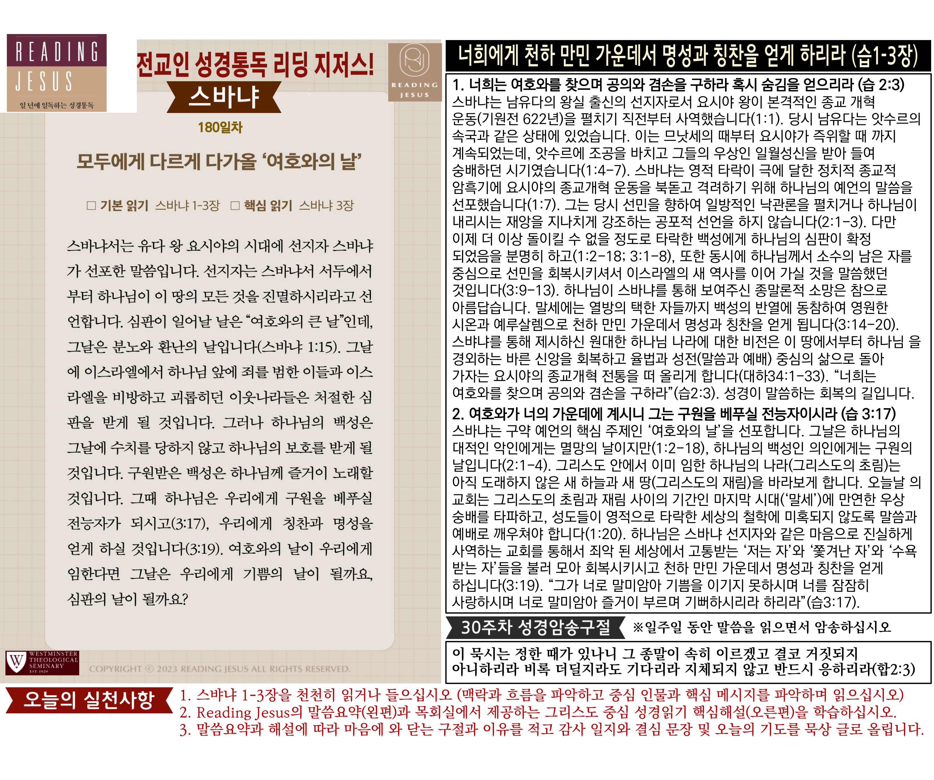 그리스도 중심 성경읽기, 리딩지저스 말씀 요약 | 30주차 : 요엘 아모스 오바댜 요나 미가 나훔 하박국 스바냐 관리자 교재와 해설 0 11 04.06 16:05 그리스도 중심 성경읽기, 리딩지저스 말씀 요약 | 30주차 : 요엘 아모스 오바댜 요나 미가 나훔 하박국 스바냐 Author 1 1 Lv.78 관리자 최고관리자 369,780 (2%) 너희 안에 이 마음을 품으라 곧 그리스도 예수의 마음이니(빌립보서 2:5) Let this mind be in you, which was also in Christ Jesus(Philippians 2:5)