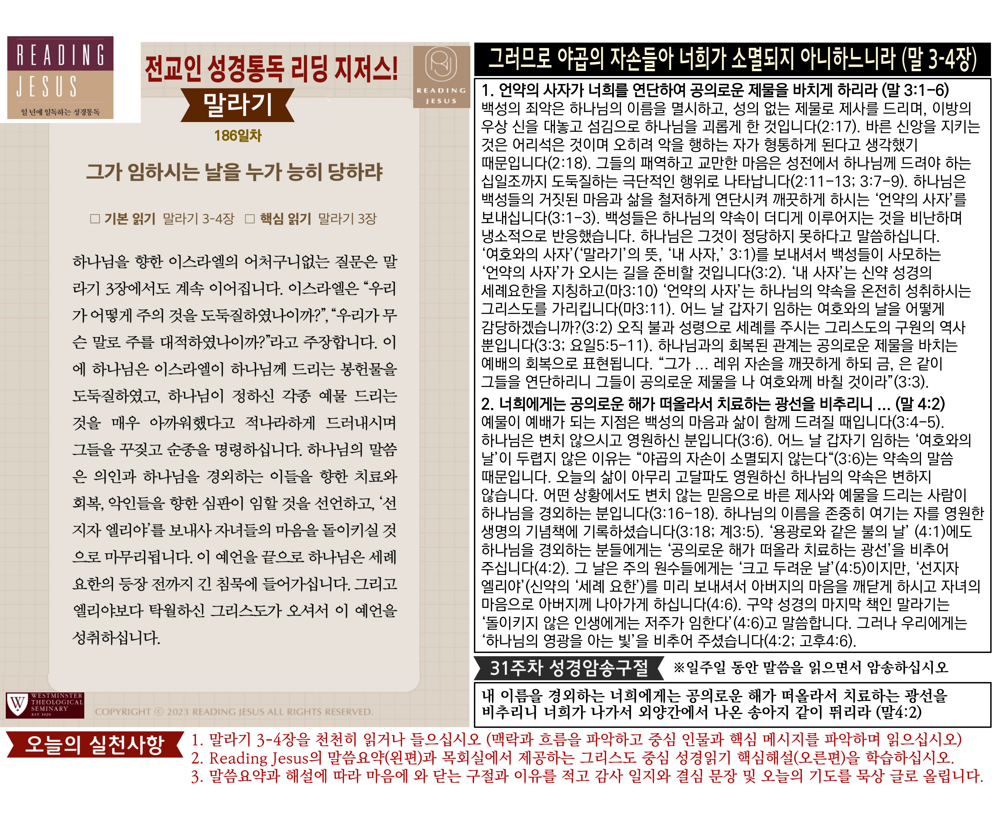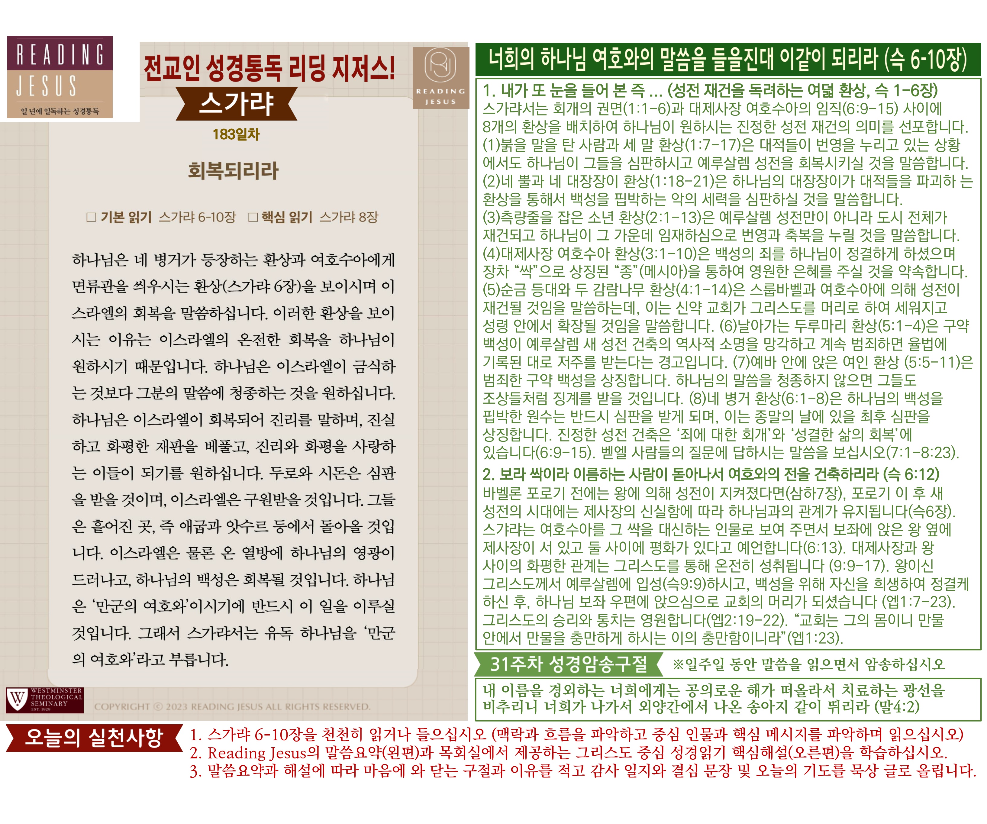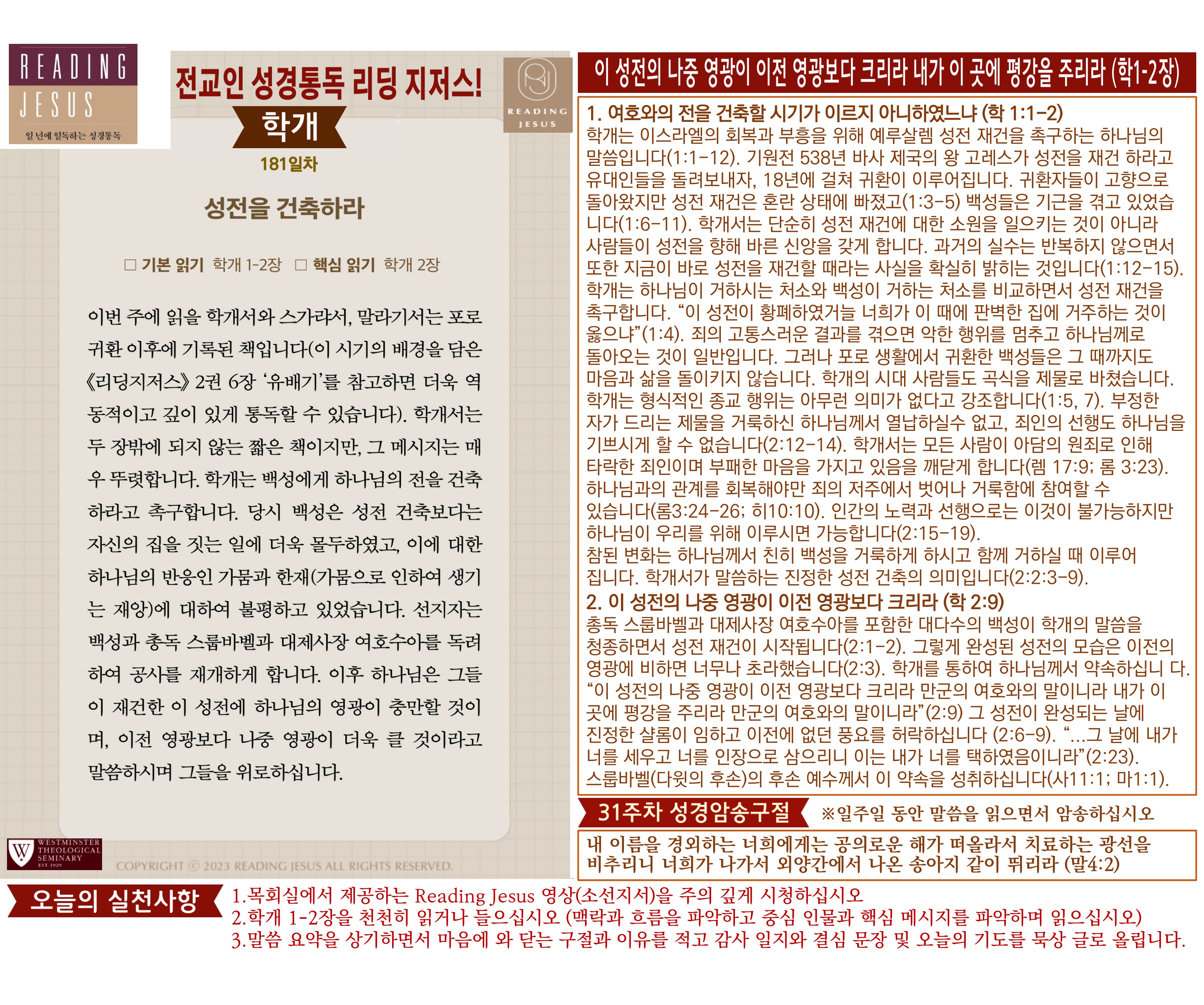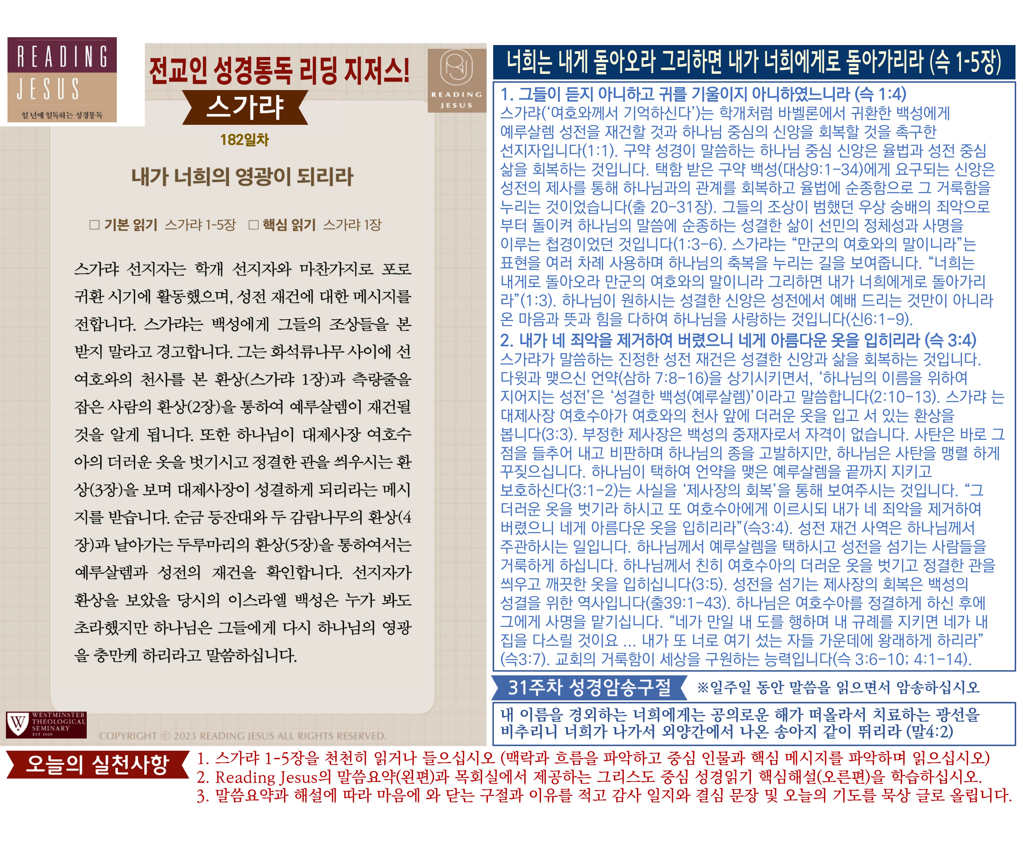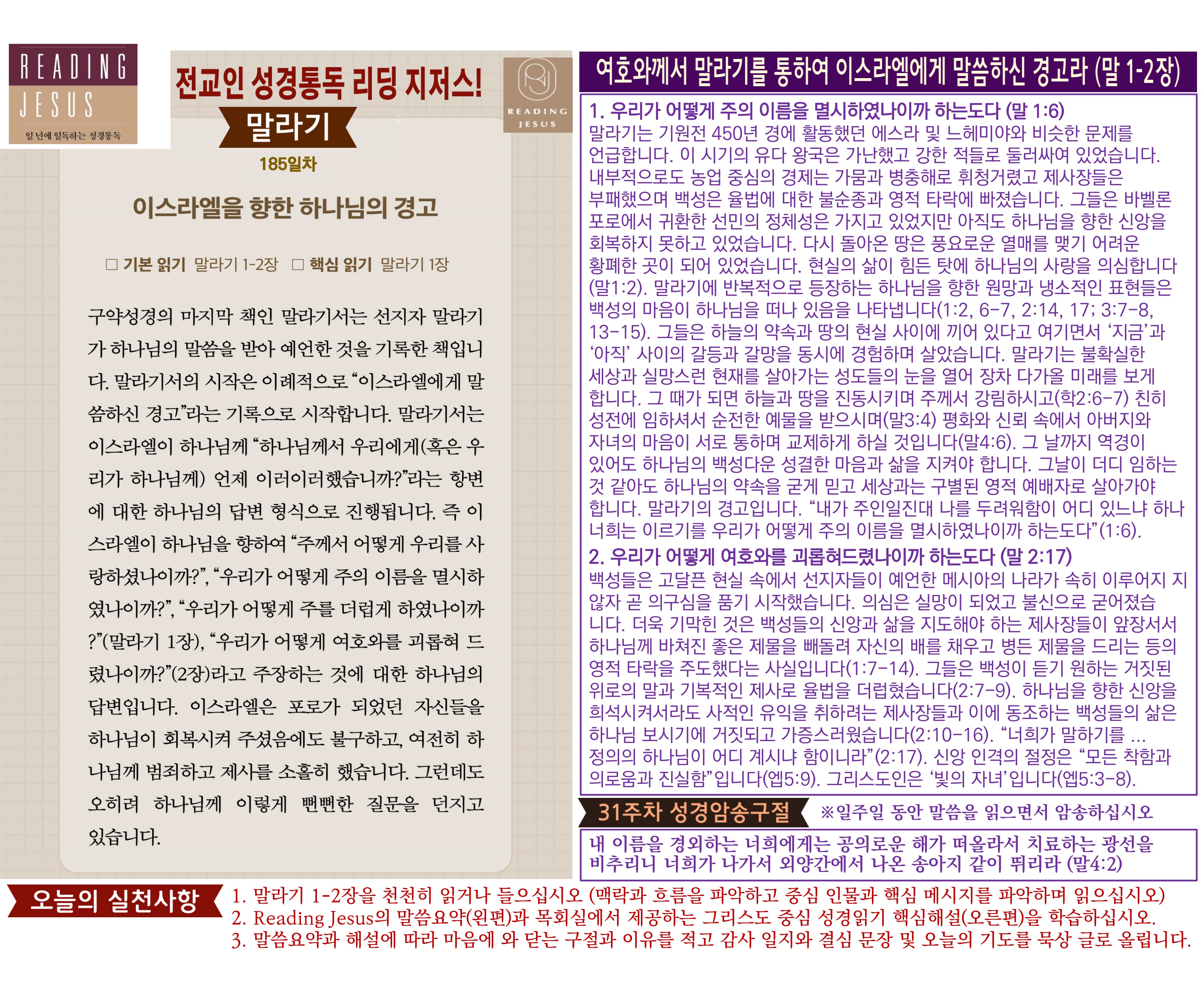 그리스도 중심 성경읽기, 리딩지저스 말씀 요약 | 31주차 : 학개 스가랴 말라기 관리자 교재와 해설 0 7 04.06 19:11 Author 1 1 Lv.78 관리자 최고관리자 369,780 (2%) 너희 안에 이 마음을 품으라 곧 그리스도 예수의 마음이니(빌립보서 2:5) Let this mind be in you, which was also in Christ Jesus(Philippians 2:5)