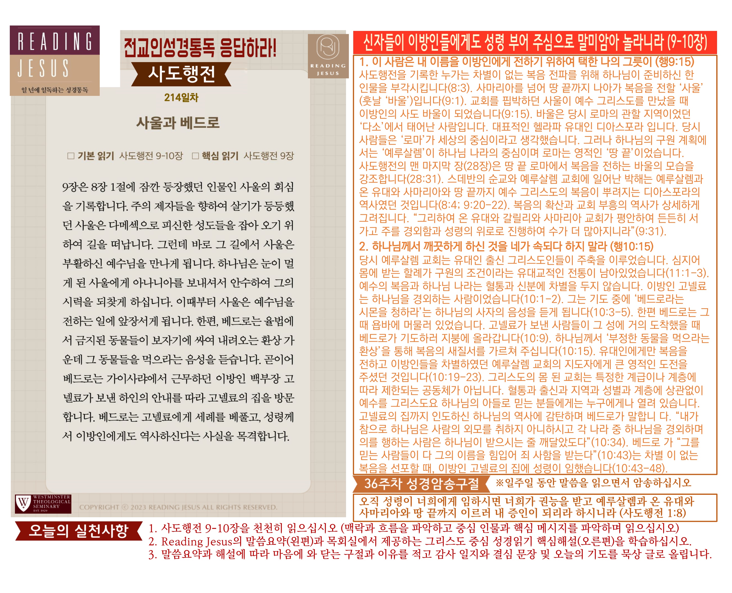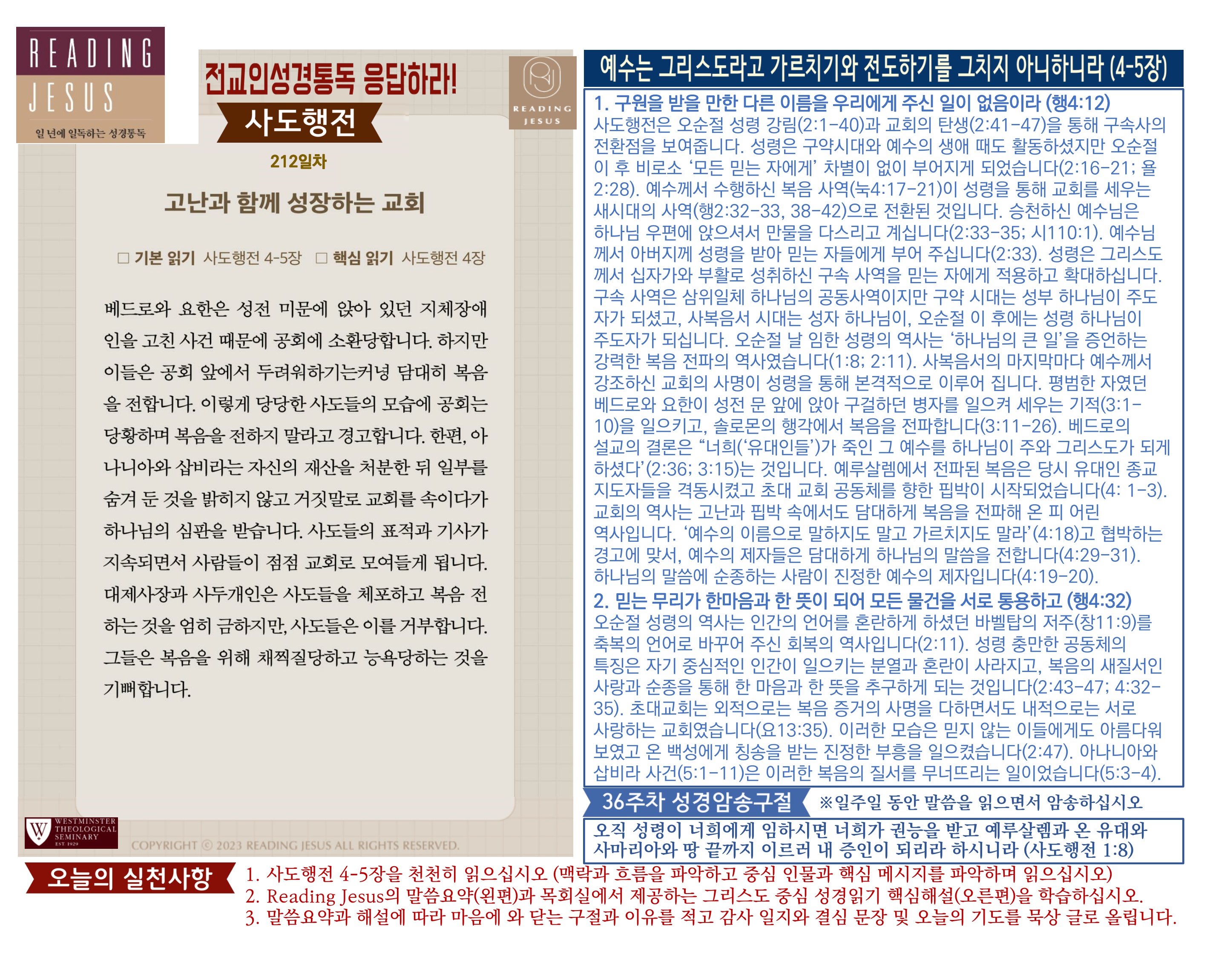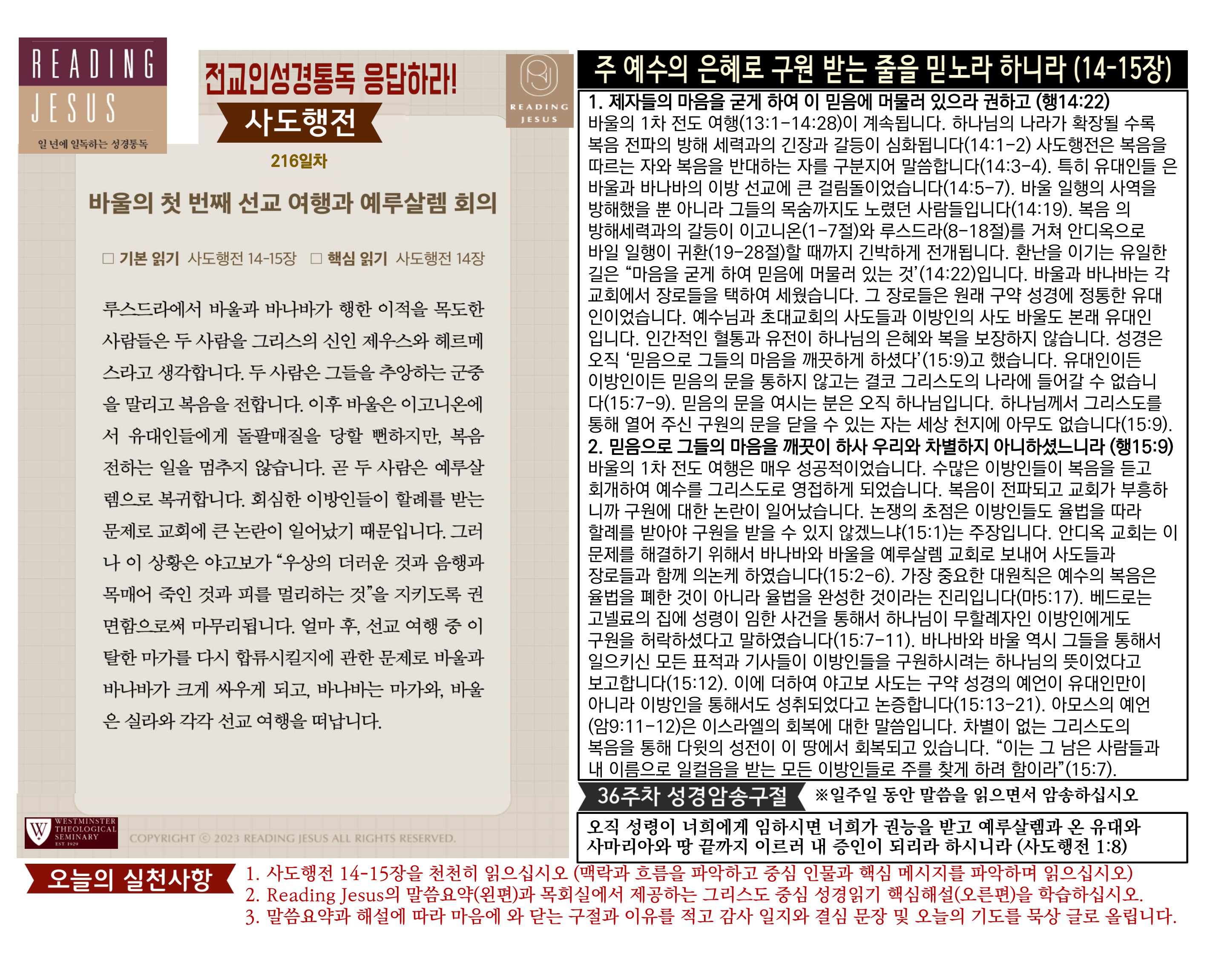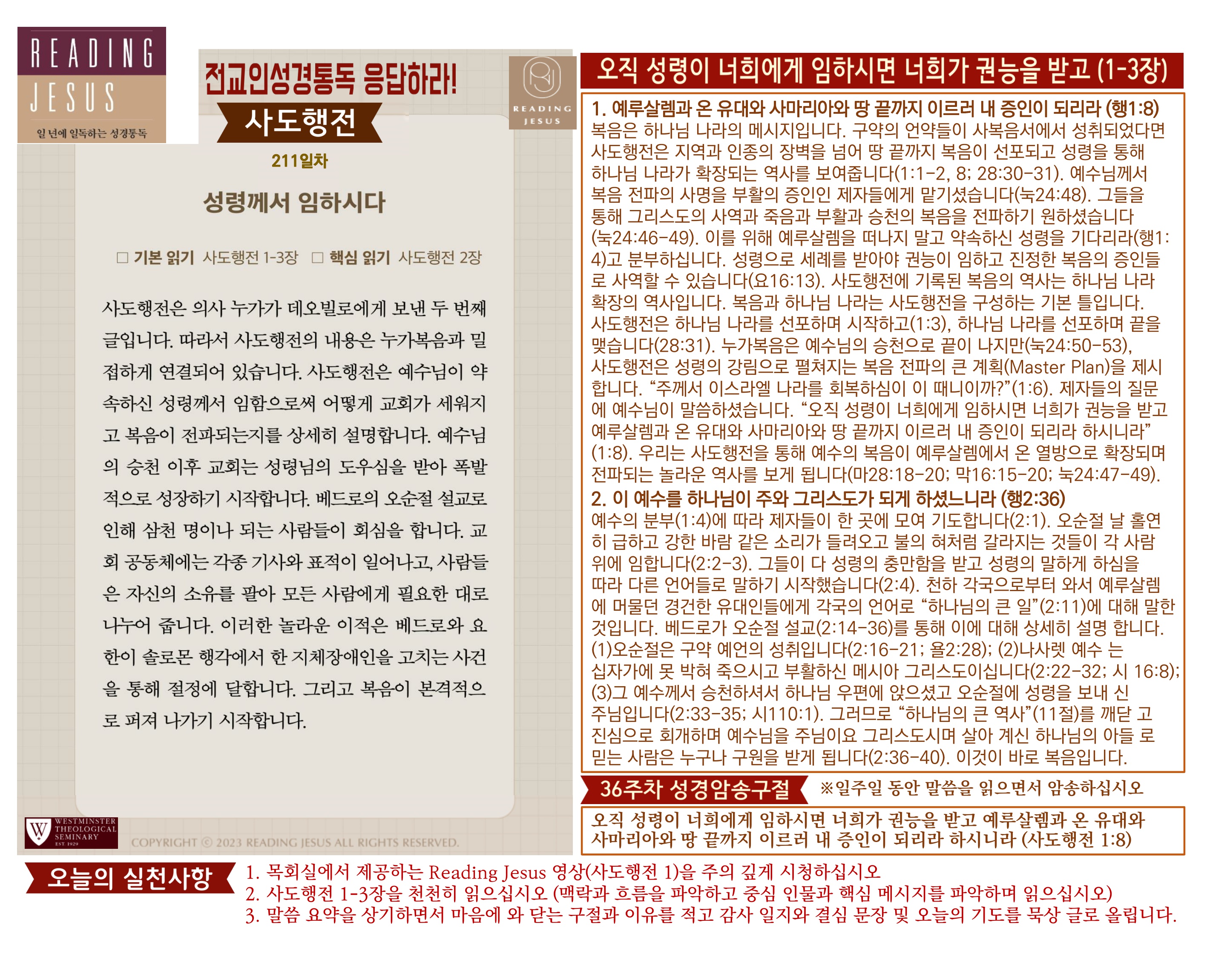 그리스도 중심 성경읽기, 리딩지저스 말씀 요약 | 36주차 : 사도행전1 관리자 교재와 해설 0 1 04.07 23:17 Author 1 1 Lv.78 관리자 최고관리자 369,880 (3.2%) 너희 안에 이 마음을 품으라 곧 그리스도 예수의 마음이니(빌립보서 2:5) Let this mind be in you, which was also in Christ Jesus(Philippians 2:5)
