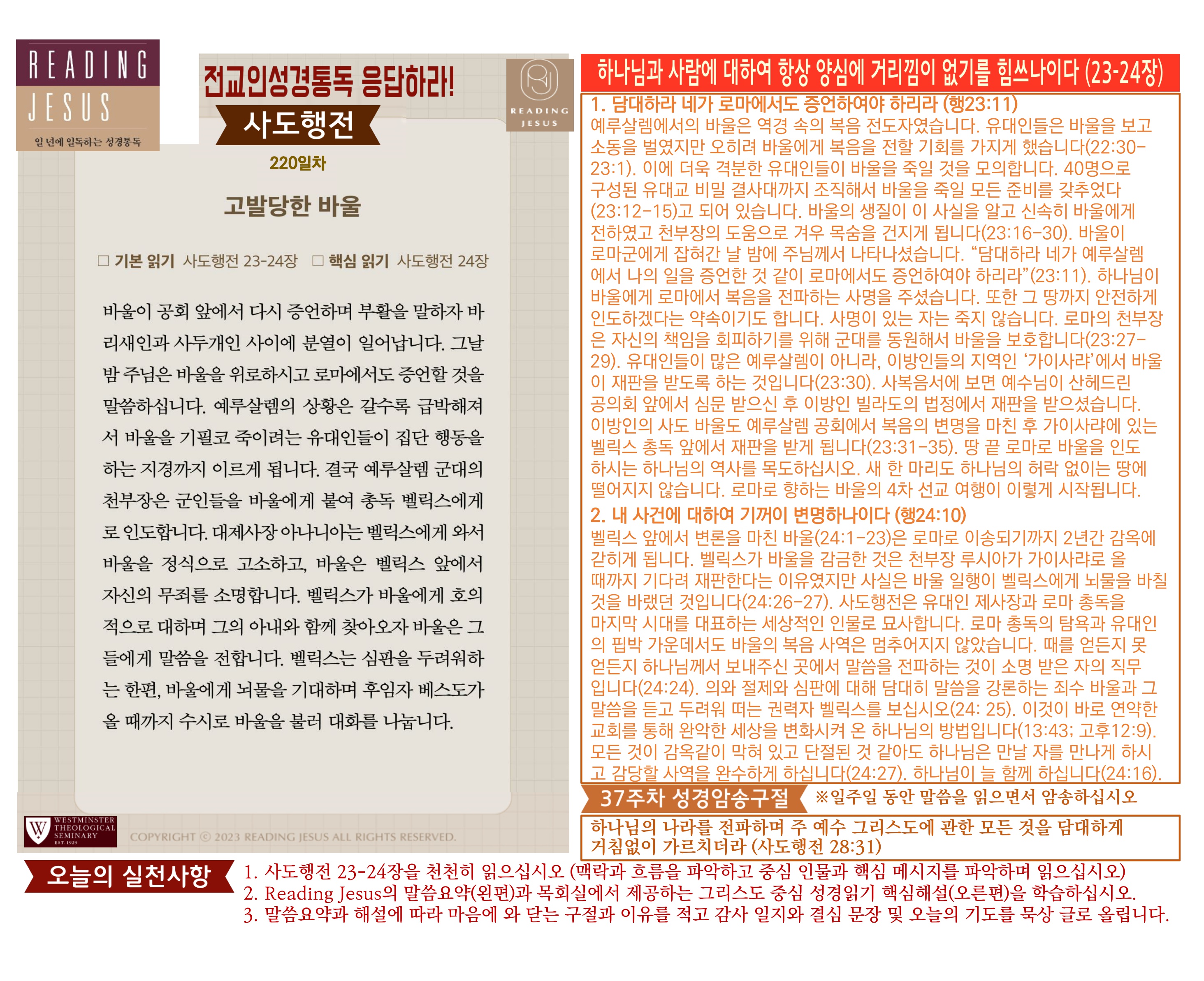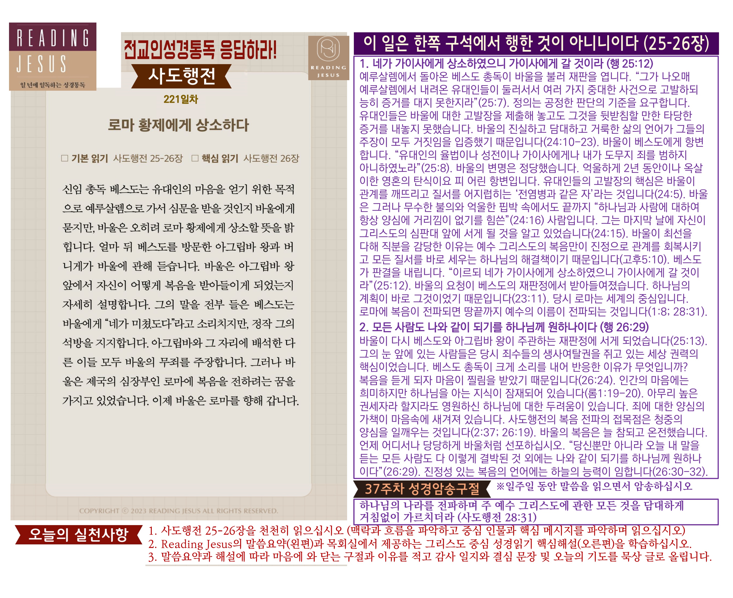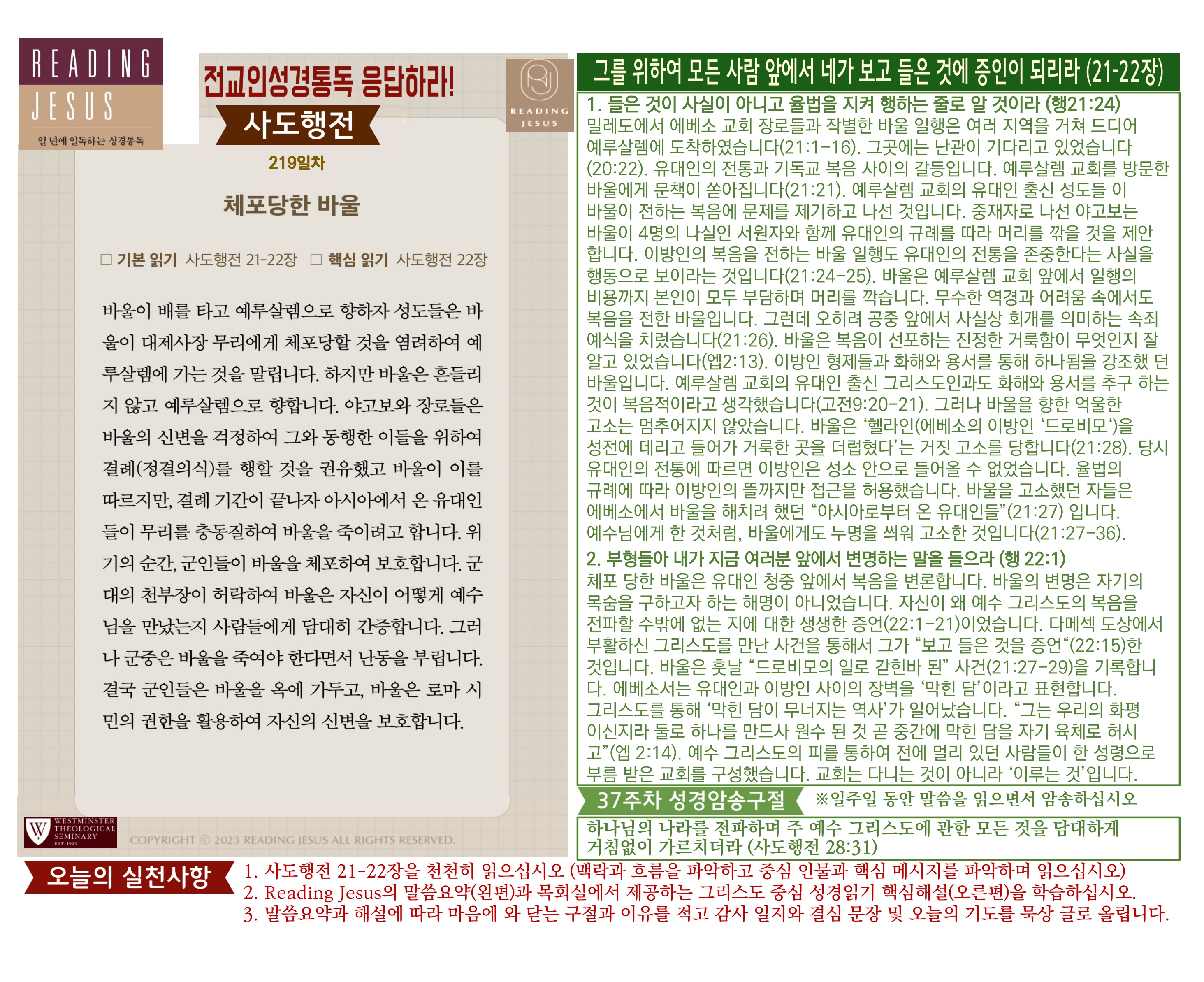 그리스도 중심 성경읽기, 리딩지저스 말씀 요약 | 37주차 : 사도행전2 관리자 교재와 해설 0 1 04.07 23:19 Author 1 1 Lv.78 관리자 최고관리자 369,880 (3.2%) 너희 안에 이 마음을 품으라 곧 그리스도 예수의 마음이니(빌립보서 2:5) Let this mind be in you, which was also in Christ Jesus(Philippians 2:5)