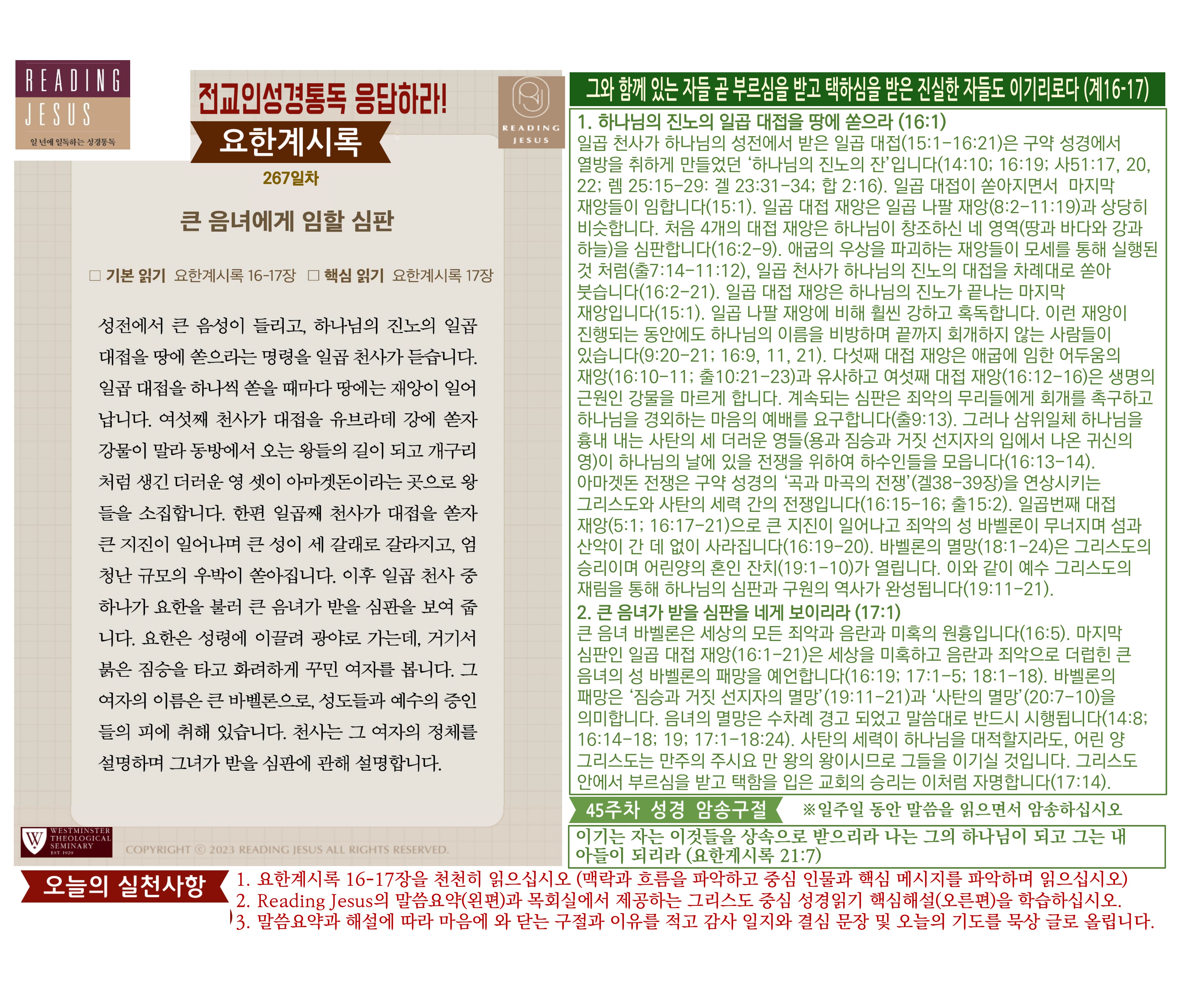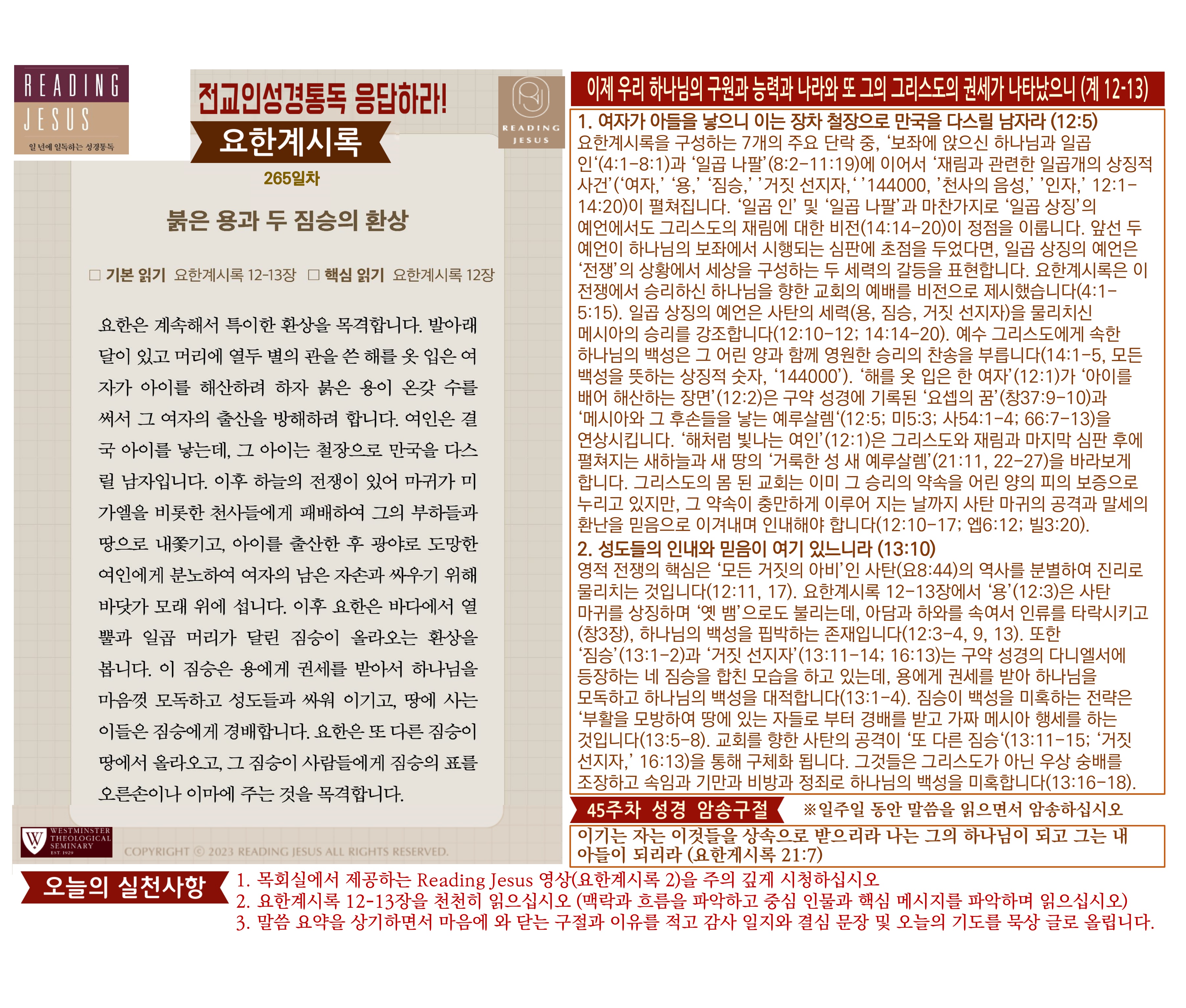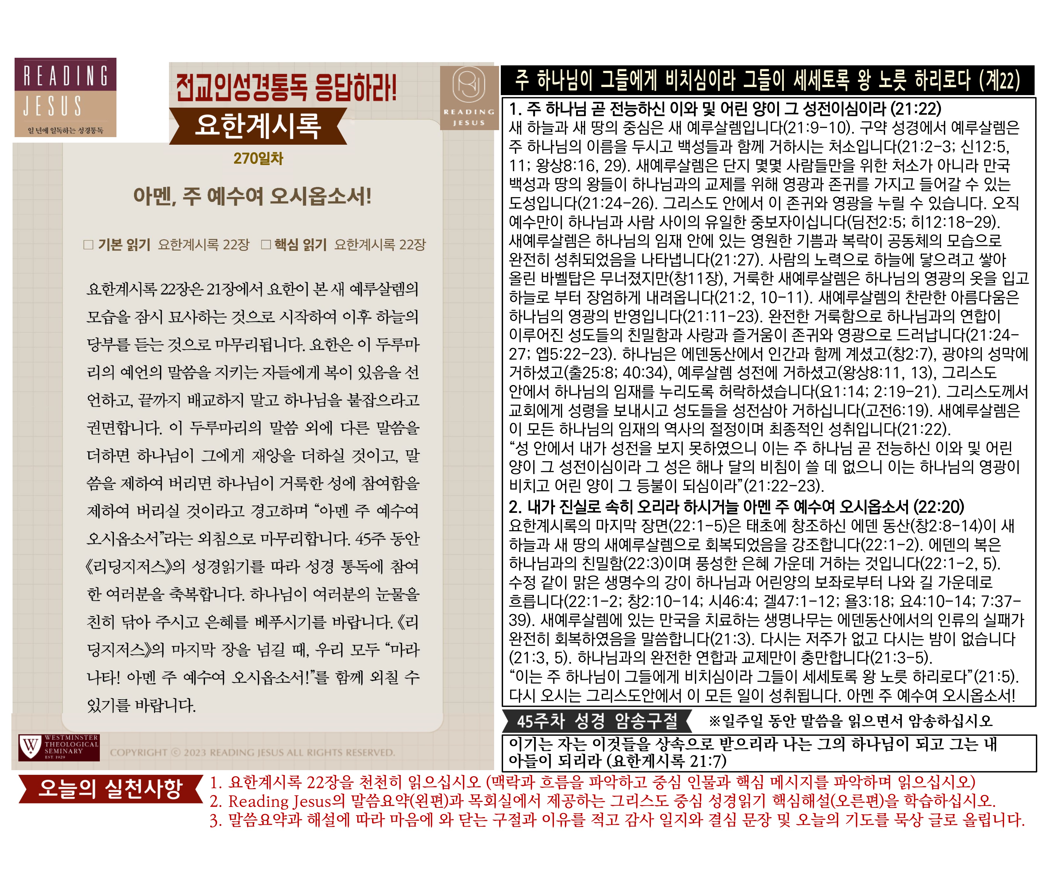 그리스도 중심 성경읽기, 리딩지저스 말씀 요약 | 45주차 : 요한계시록2 관리자 교재와 해설 0 1 2시간전 Author 1 1 Lv.78 관리자 최고관리자 370,580 (11.2%) 너희 안에 이 마음을 품으라 곧 그리스도 예수의 마음이니(빌립보서 2:5) Let this mind be in you, which was also in Christ Jesus(Philippians 2:5)