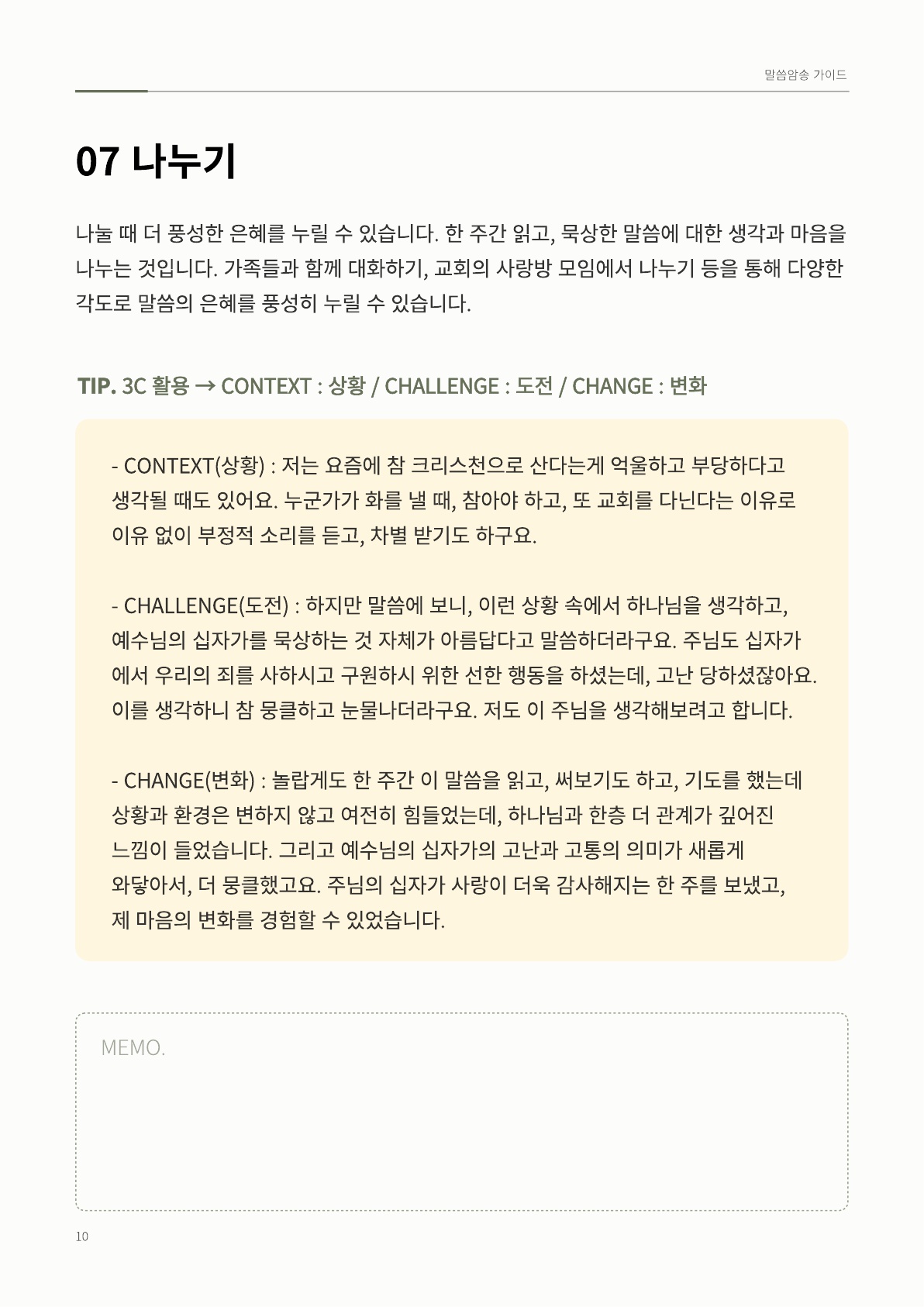 말씀 암송 가이드 ③ 관리자 공지 0 61256 2024.12.07 05:47 말씀 암송 가이드 ③ Author 1 1 Lv.77 관리자 최고관리자 368,630 (88.7%) 너희 안에 이 마음을 품으라 곧 그리스도 예수의 마음이니(빌립보서 2:5) Let this mind be in you, which was also in Christ Jesus(Philippians 2:5)