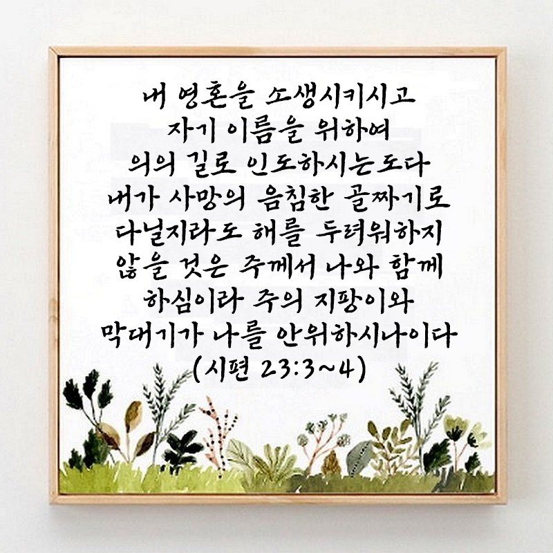 시편 23편 3절~4절 관리자 시편 0 4238 2024.12.02 06:12 Author 1 1 Lv.77 관리자 최고관리자 368,630 (88.7%) 너희 안에 이 마음을 품으라 곧 그리스도 예수의 마음이니(빌립보서 2:5) Let this mind be in you, which was also in Christ Jesus(Philippians 2:5)
