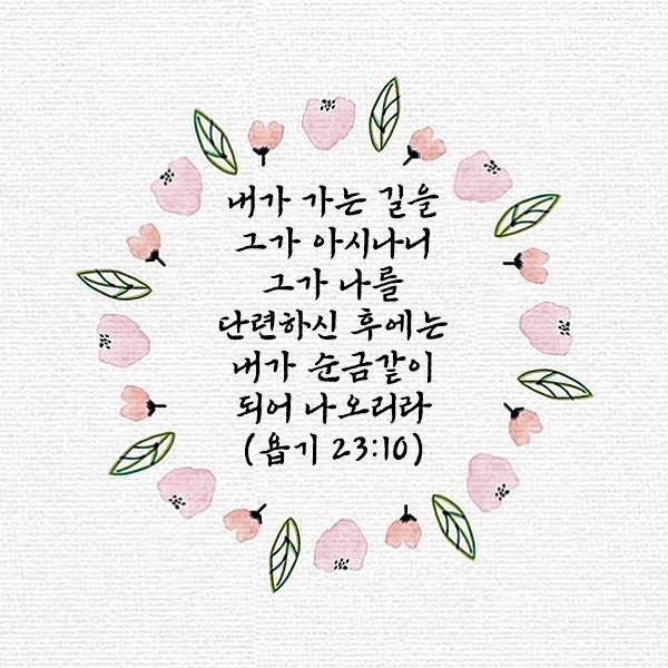 욥기 23장 10절 관리자 욥기 0 2960 2024.12.17 04:30 Author 1 1 Lv.77 관리자 최고관리자 368,630 (88.7%) 너희 안에 이 마음을 품으라 곧 그리스도 예수의 마음이니(빌립보서 2:5) Let this mind be in you, which was also in Christ Jesus(Philippians 2:5)