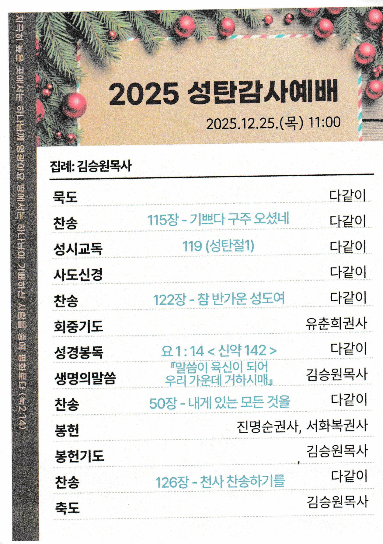 스마트 주보 - 2025년 성탄감사예배