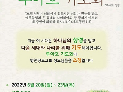 2022년 6월 20일(월) ~ 다음 세대와 나라를 위한 루아흐 기도회 * 루아흐 : 성령이라는 뜻입니다.