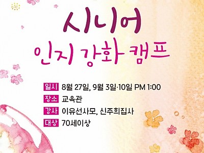 시니어인지강화캠프 : 2023년 8월 27일(주일)/9월 3일(주일)/9월 10일(주일)