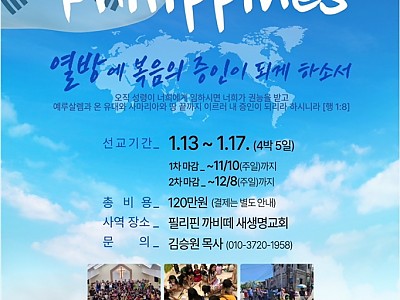 필리핀 부흥성회 :2024년 2월 26일~3월 1일 필리핀 마닐라 새생명 교회