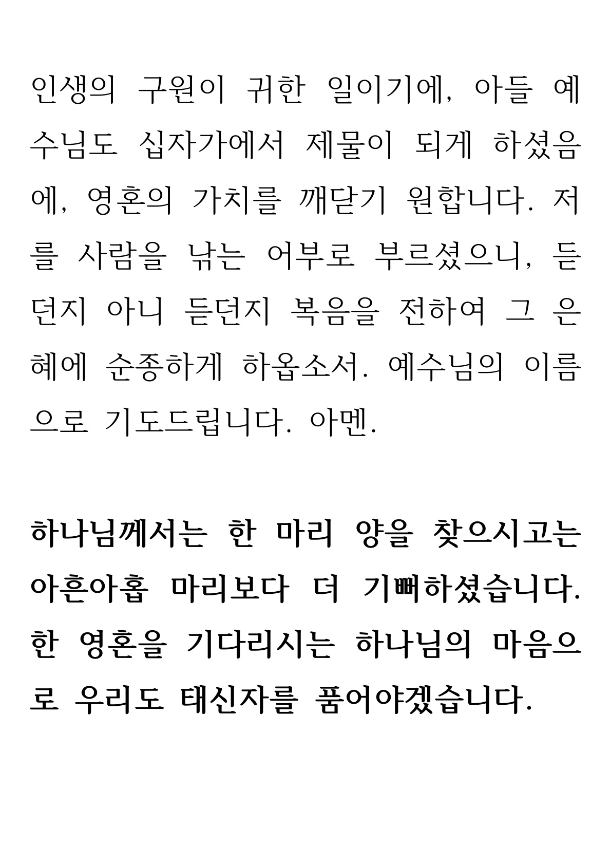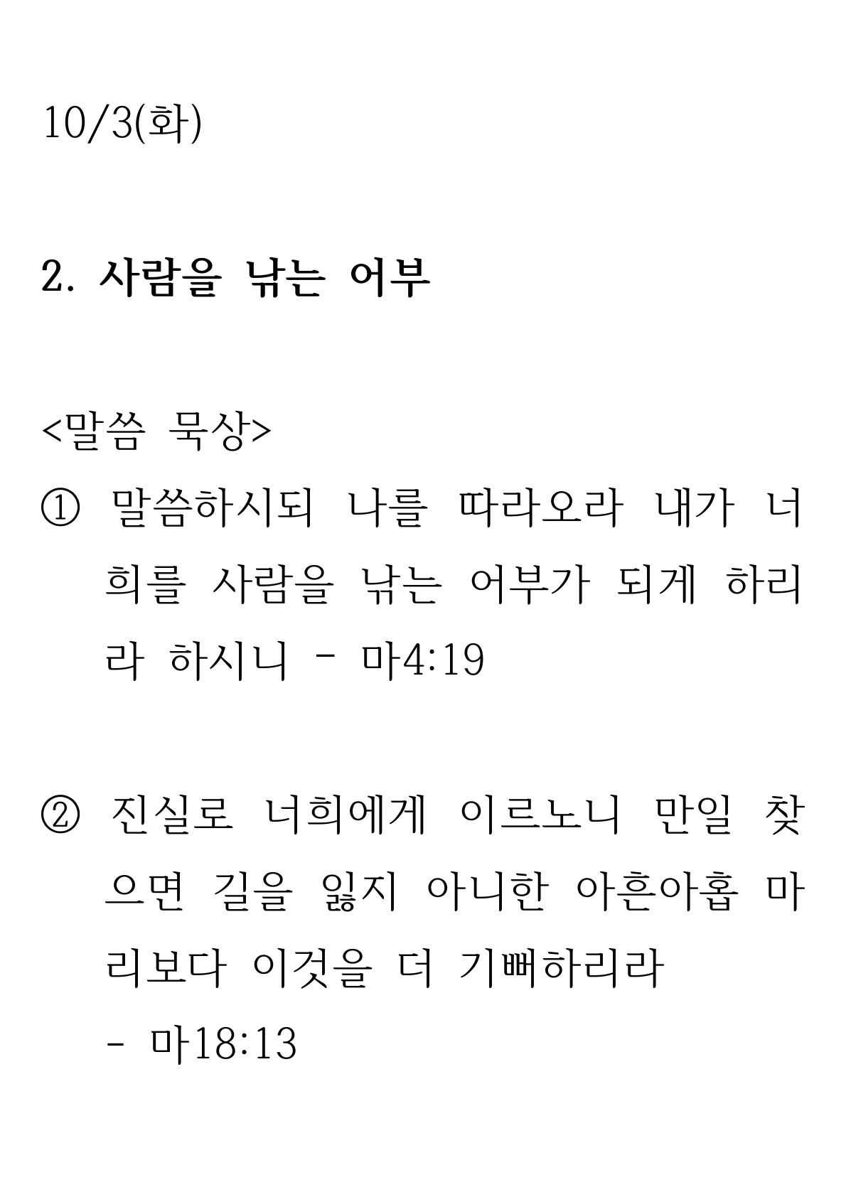 2023 새생명 축제 전 2일차 말씀 (10월 3일 - 화) : 사람을 낚는 어부 병천교회 0 2734 2023.10.04 22:16 다운로드시 20MP 차감 (최초 1회 / 재다운로드시 차감없음) 2023.10.04 22:16 10.3 사람을 낚는 어부.pdf (36.1K) + 0 2023 새생명 축제 전 2일차 말씀 (10월 3일 - 화) : 사람을 낚는 어부 PDF 파일 포맷으로 작성된 문서입니다. Author 1 0 Lv.1 병천교회 최고관리자 0 (0%) 너희도 그들 중에서 예수 그리스도의 것으로 부르심을 받은 자니라. And you also are among those who are called to belong to Jesus Christ. (롬 1:6 - Rm 1:6)
