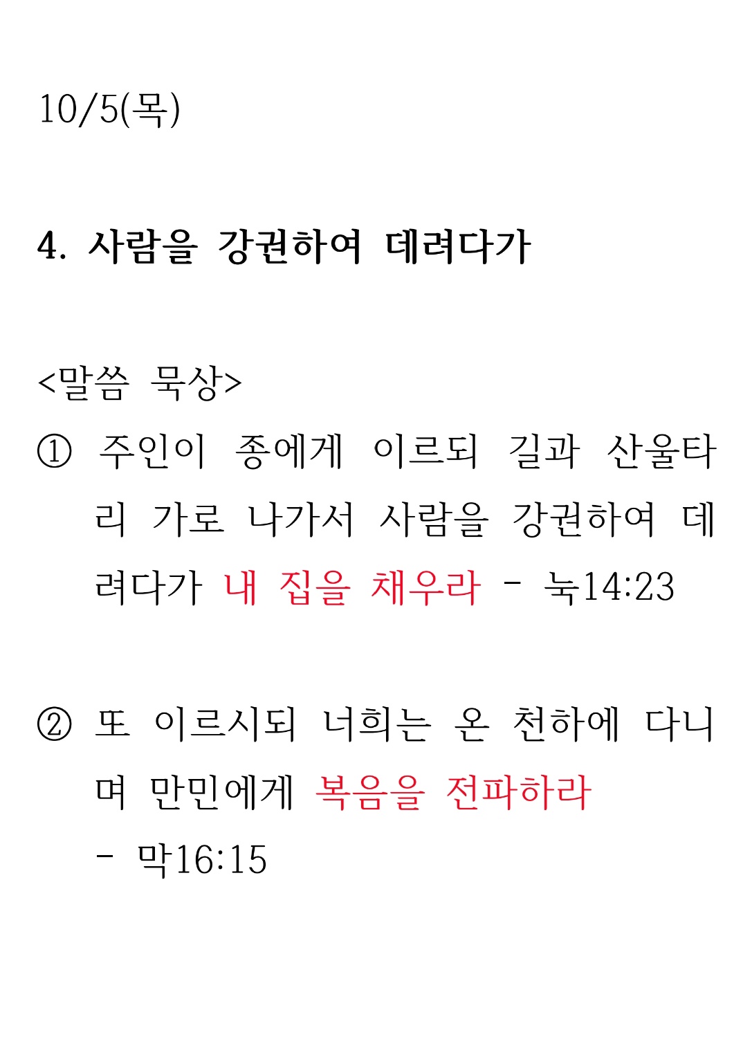 2023 새생명 축제 전 4일차 말씀 (10월 5일 - 목) : 사람을 강권하여 데려다가 병천교회 0 2563 2023.10.05 10:29 2023 새생명 축제 전 4일차 말씀 (10월 5일 - 목) : 사람을 강권하여 데려다가 Author 1 0 Lv.1 병천교회 최고관리자 0 (0%) 너희도 그들 중에서 예수 그리스도의 것으로 부르심을 받은 자니라. And you also are among those who are called to belong to Jesus Christ. (롬 1:6 - Rm 1:6)