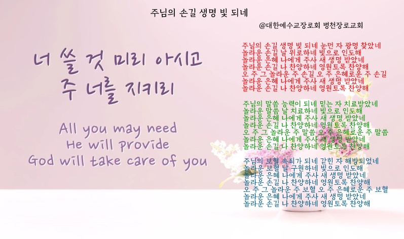찬양곡 게시판에 업로드되어있는 찬양곡의 저작권은 처음 만드신 분들에게 있음을 알려드리며, 찬양을 통하여 하나님께 영광을 돌리며, 듣는 이들에게는 많은 은혜의 시간이 되시기 바랍니다.