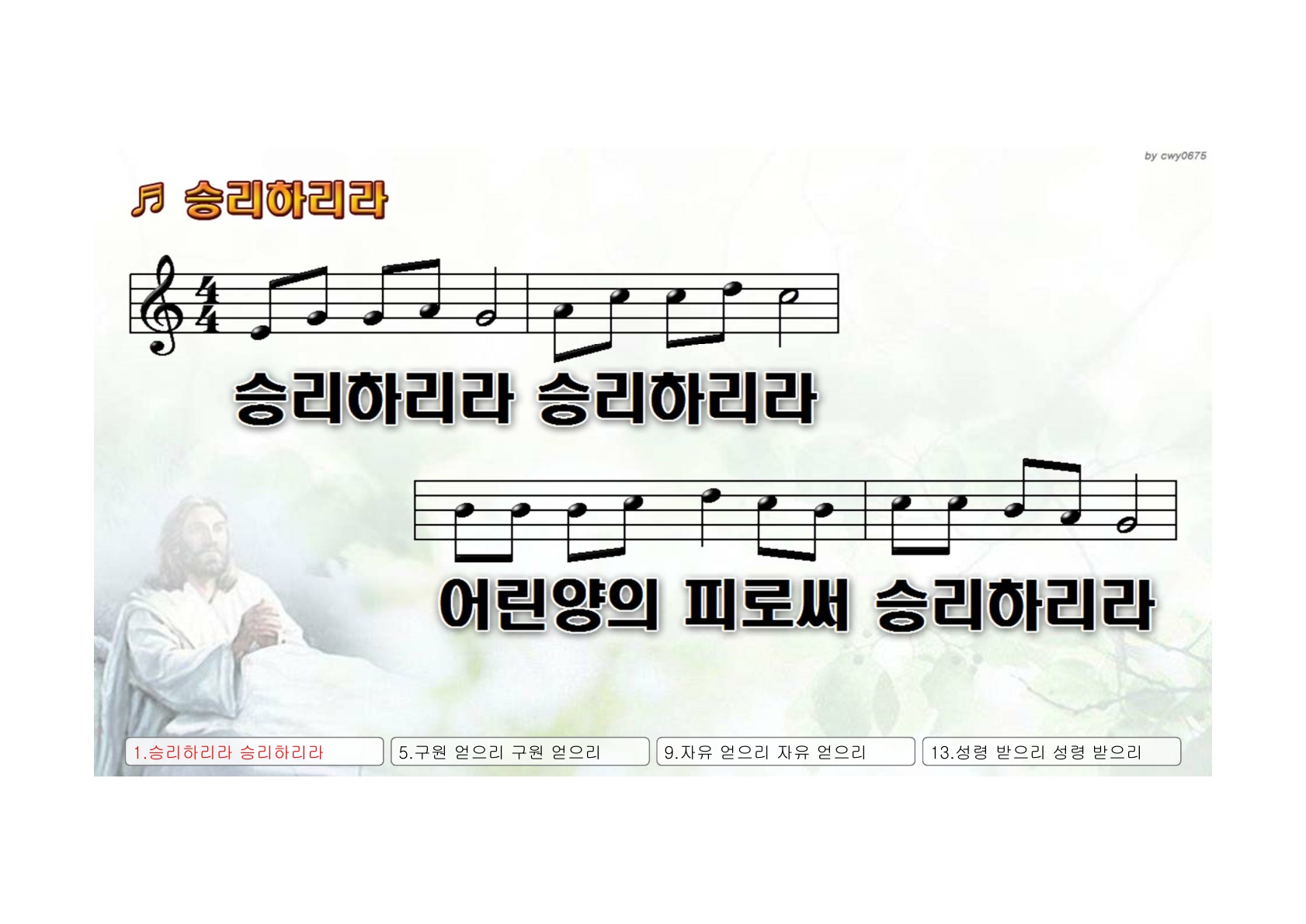 승리하리라 승리하리라 어린양의 피로써 승리하리라