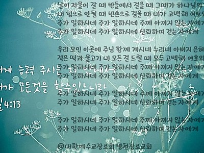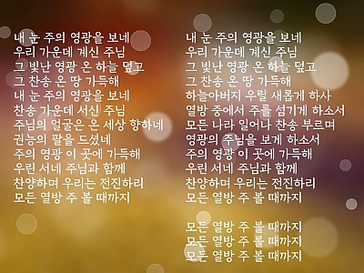 찬양곡 게시판에 업로드되어있는 찬양곡의 저작권은 처음 만드신 분들에게 있음을 알려드리며, 찬양을 통하여 하나님께 영광을 돌리며, 듣는 이들에게는 많은 은혜의 시간이 되시기 바랍니다.