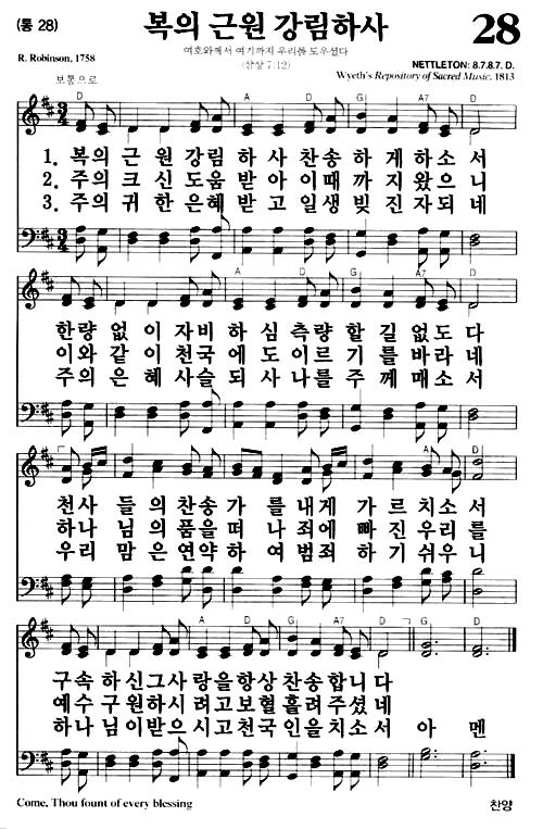 새찬송가 28장(통28장) 복의 근원 강림하사 Come, Thou Fount of Every Blessing