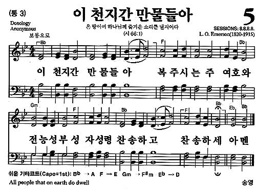 새찬송가 5장(통3장) 이 천지간 만물들아 Praise God, from whom all blessings flow