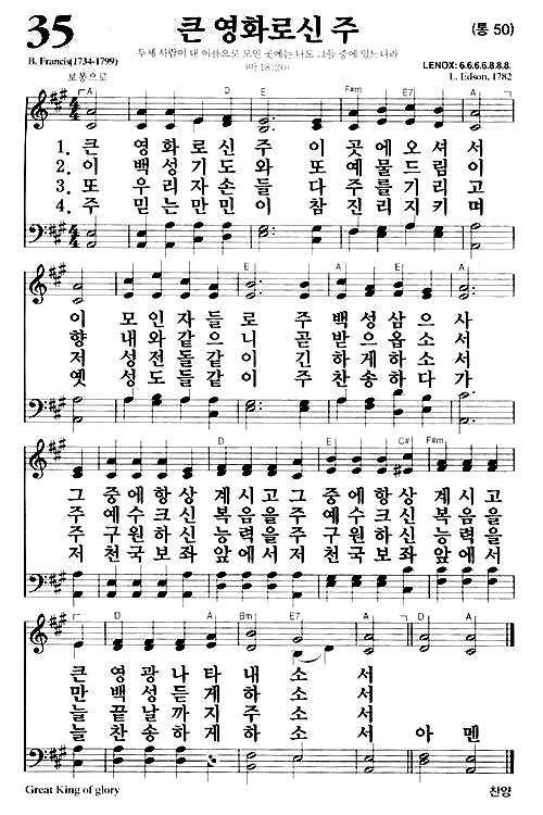 새찬송가 35장(통50장) 큰 영화로신 주 Great King of Glory