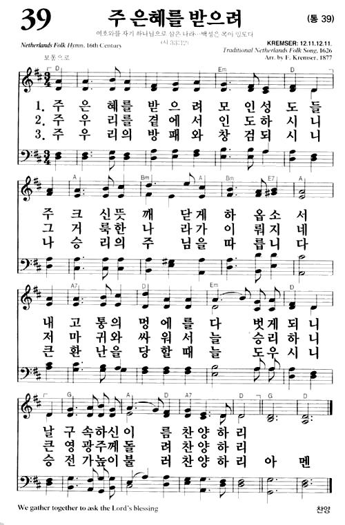 새찬송가 39장(통39장) 주 은혜를 받으려 We Gather Together to Ask the Lord's Blessing