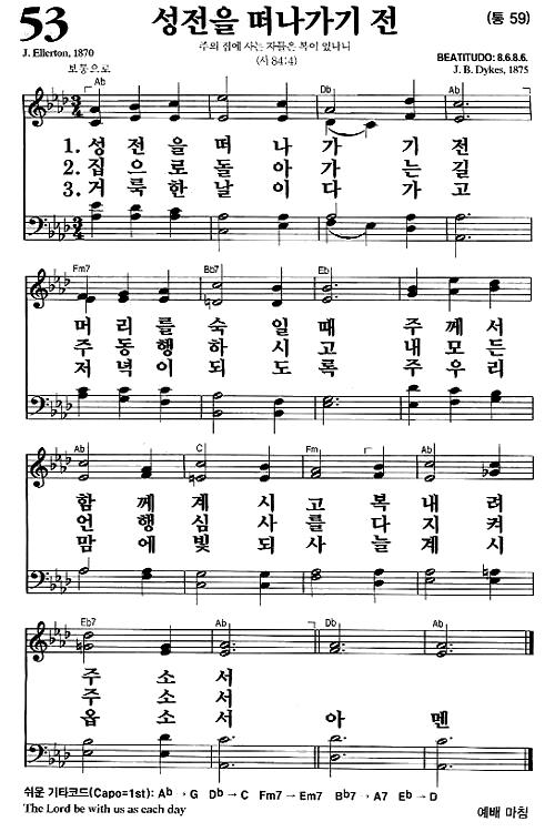 [찬송가 반주] 새찬송가 53장(통59장) 성전을 떠나가기 전 The Lord be With Us as Each Day