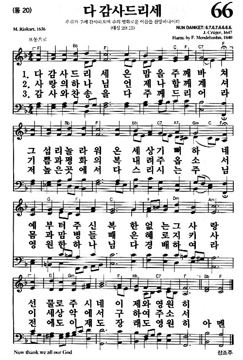 [찬송가 반주] 새찬송가 66장(통20장) 다 감사드리세 Now Thank We all our God