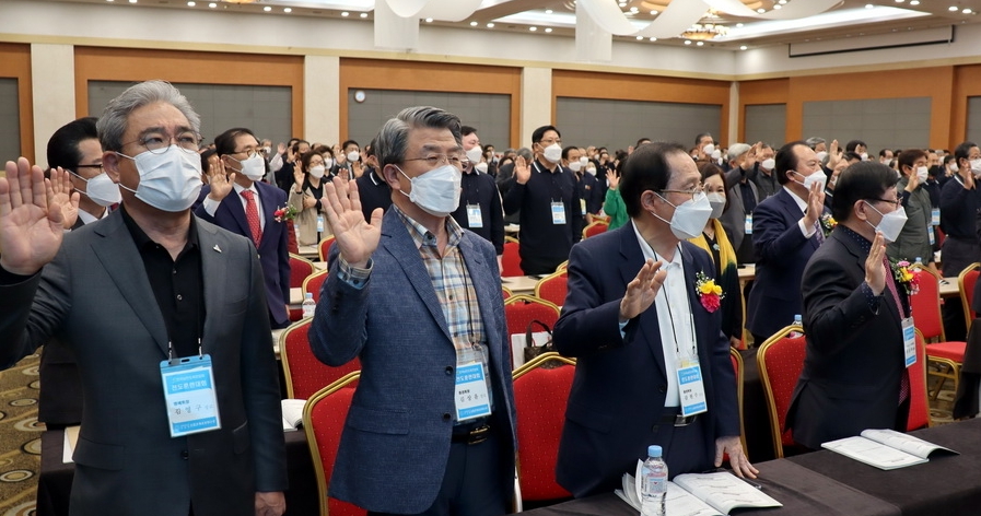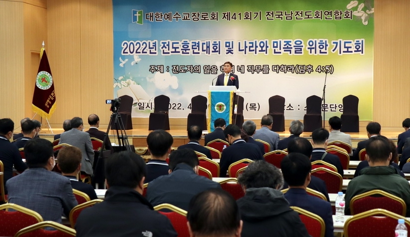 전국남전도회연합회(회장:임성철 장로, 이하 전국남전련)는 소노문 단양에서 2022년 전도훈련대회 및 나라와민족을위한기도회를 열고, 코로나19가 종식되는 가운데 전국남전련의 본연의 사명인 국내외 전도와 교회 개척에 최선을 다할 것을 다짐했다.