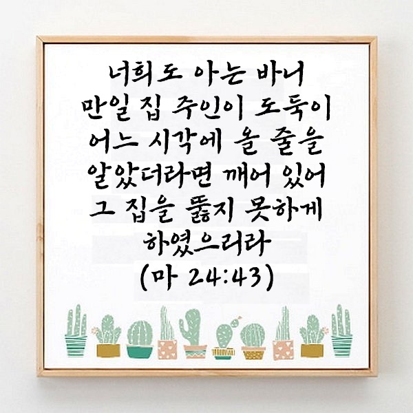 마태복음 24장 43절 관리자 마태복음 0 2615 2025.06.29 05:04 Author 1 1 Lv.77 관리자 최고관리자 367,730 (78.2%) 너희 안에 이 마음을 품으라 곧 그리스도 예수의 마음이니(빌립보서 2:5) Let this mind be in you, which was also in Christ Jesus(Philippians 2:5)