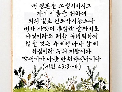 시편 121편 1절~2절 관리자 시편 0 979 01.26 02:46 Author 1 1 Lv.77 관리자 최고관리자 367,730 (78.2%) 너희 안에 이 마음을 품으라 곧 그리스도 예수의 마음이니(빌립보서 2:5) Let this mind be in you, which was also in Christ Jesus(Philippians 2:5)