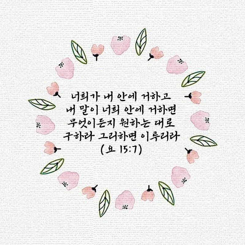 요한복음 15장 7절 관리자 요한복음 0 3897 2024.12.07 08:35 Author 1 1 Lv.77 관리자 최고관리자 367,730 (78.2%) 너희 안에 이 마음을 품으라 곧 그리스도 예수의 마음이니(빌립보서 2:5) Let this mind be in you, which was also in Christ Jesus(Philippians 2:5)