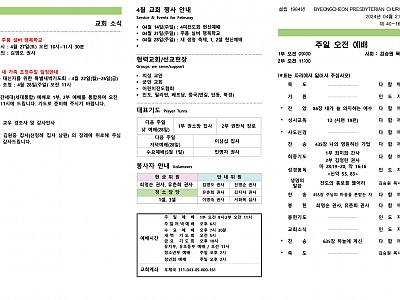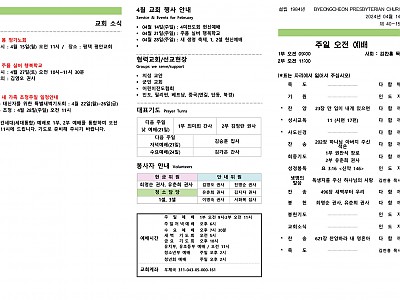 2024년 02월 04일 (주일) 주보입니다. \