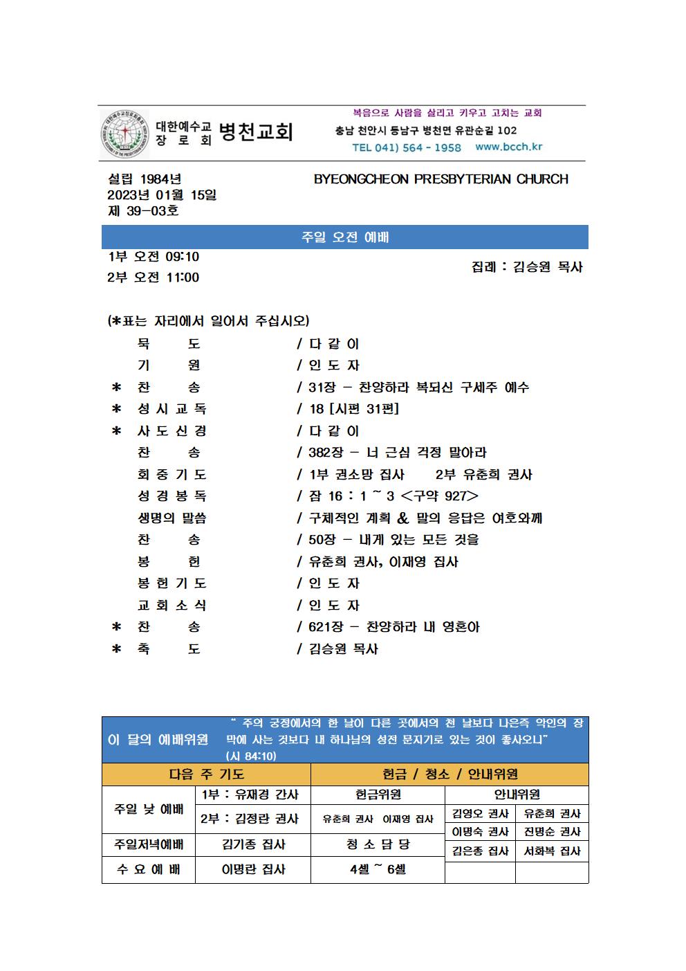 2023년 1월 15일 주보