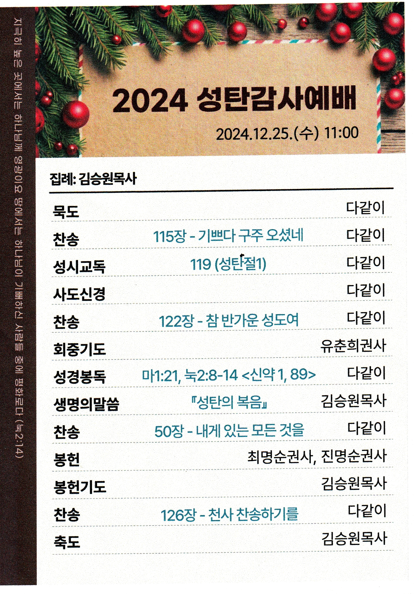 2024년 성탄 감사예배 주보