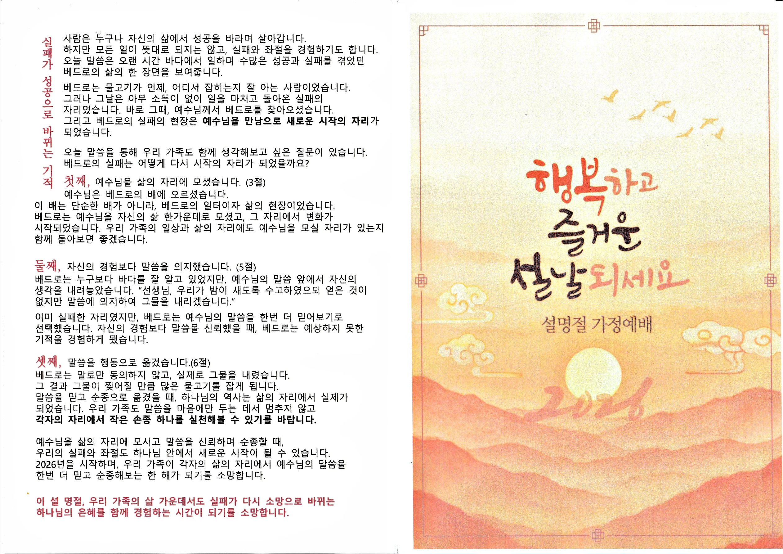 설 명절 가정예배 순서지