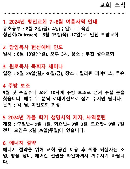 교회소식 (2024년 08월 04일 주일)
