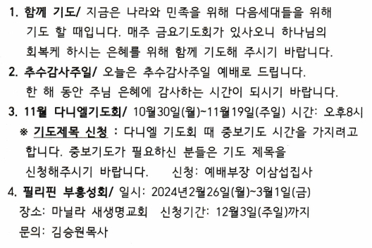 교회소식 (2023년 11월 12일 주일)