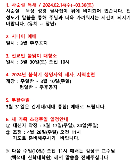 2024년 03월 03일 (주일) 교회소식입니다.