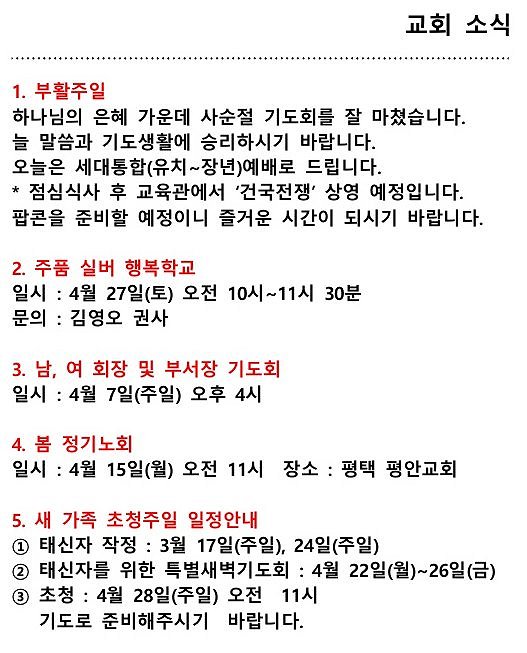 교회소식 (2024년 03월 31일 주일)