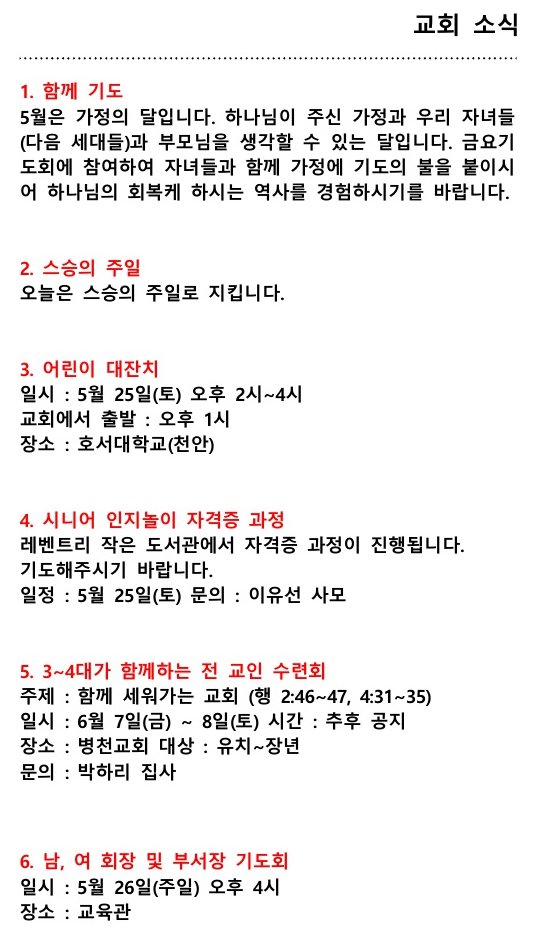 교회소식 (2024년 05월 19일 주일)