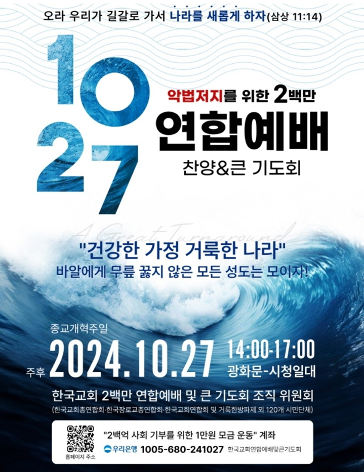 한국교회 연합예배 - 10월 27일(주일) 종교개혁주일 오후 2시