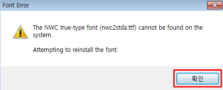 2. 실행하면 폰트 오류 메세지 창이 뜨는데 무시하고 확인을 클릭합니다.